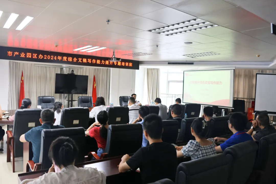 为进一步提升全体干部职工综合文稿写作能力和水平,推动市委、市政府决策部署高质量落地落实,防城港市产业园区改革发展办公室于2024年7月18日上午举办了综合文稿写作能力提升专题培训班,邀请了市委办邹春华同志作专题授课。防城港市产业园区改革发展办公室党组成员、副主任陈洁主持培训。