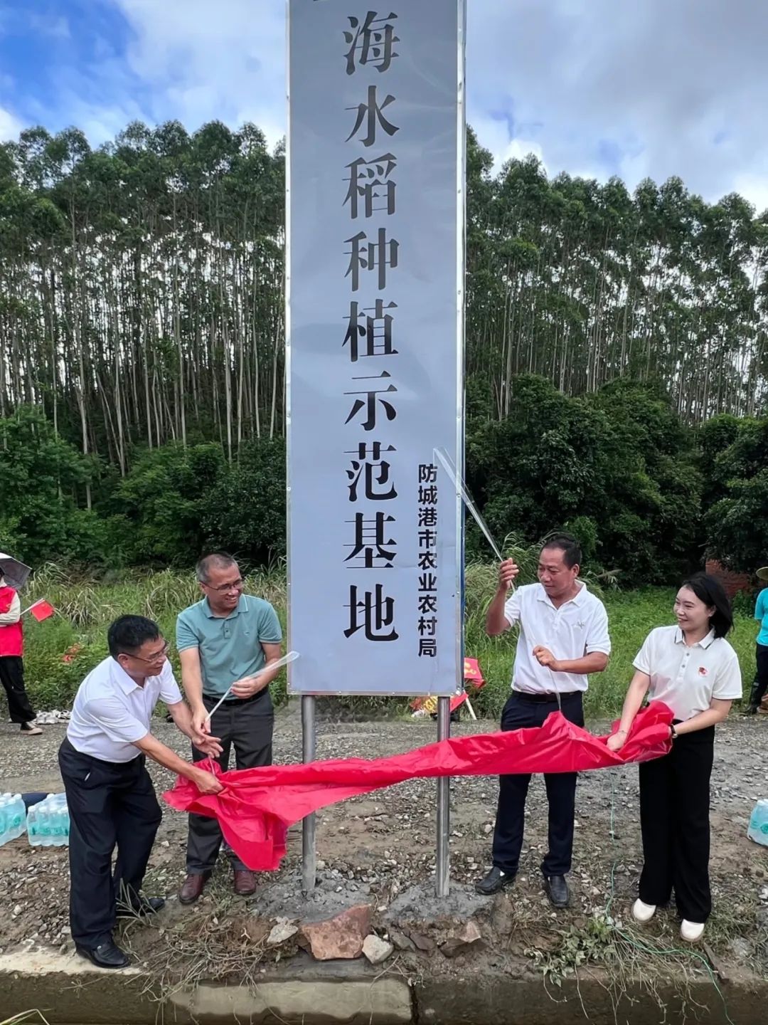 现场农业农村局副局长黄雪峰同志、中国东盟海水稻研究院副院长周鸿凯教授、市国资委副主任潘毅同志、市兴港集团副总经理唐榕蔚同志为“海水稻种植示范基地”揭牌,充分肯定市兴港集团在藏粮于地、藏粮于技工作与助力乡村振兴方面取得的出色成绩。