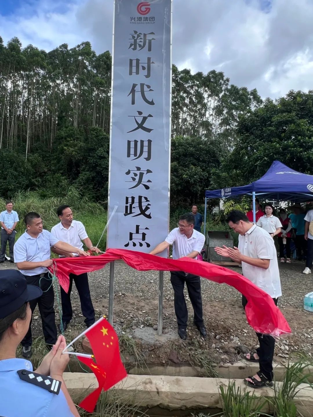 市兴港集团推出精神文明创建进稻田,在田间设置“新时代文明实践点”,以创新形式打通宣传群众、教育群众、关心群众、服务群众的“最后一公里”。现场市委社会工作部副部长钟恒栋同志、市国资委副主任潘毅同志、市退役军人服务中心主任黄元武同志、市兴港集团副总经理王宇同志共同为“新时代文明实践点”揭牌。