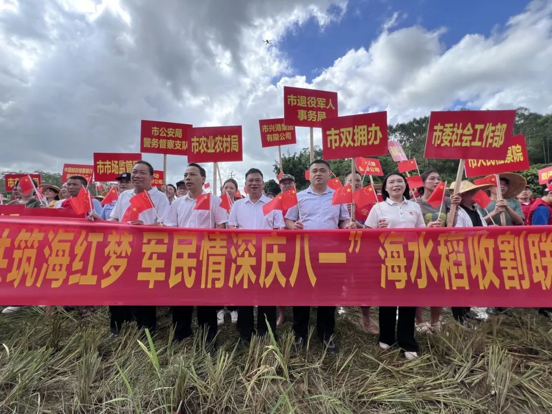 今年是中国人民解放军建军97周年,为深入贯彻党的二十大精神,进一步加强双拥工作,谱写美丽乡村“双拥”新赞歌,助力乡村振兴。8月2日上午,在市委社会工作部、市双拥办、市农业农村局、市国资委与市民宗委的支持下,市兴港集团携手全市36家单位与企业开展清廉防城港“携手共筑海红梦 军民情深庆八一”海水稻收割志愿者在行动联合党(团)日活动。现场汇聚两百多名党员干部职工群众,共同见证并参与了这一意义非凡的农耕实践。