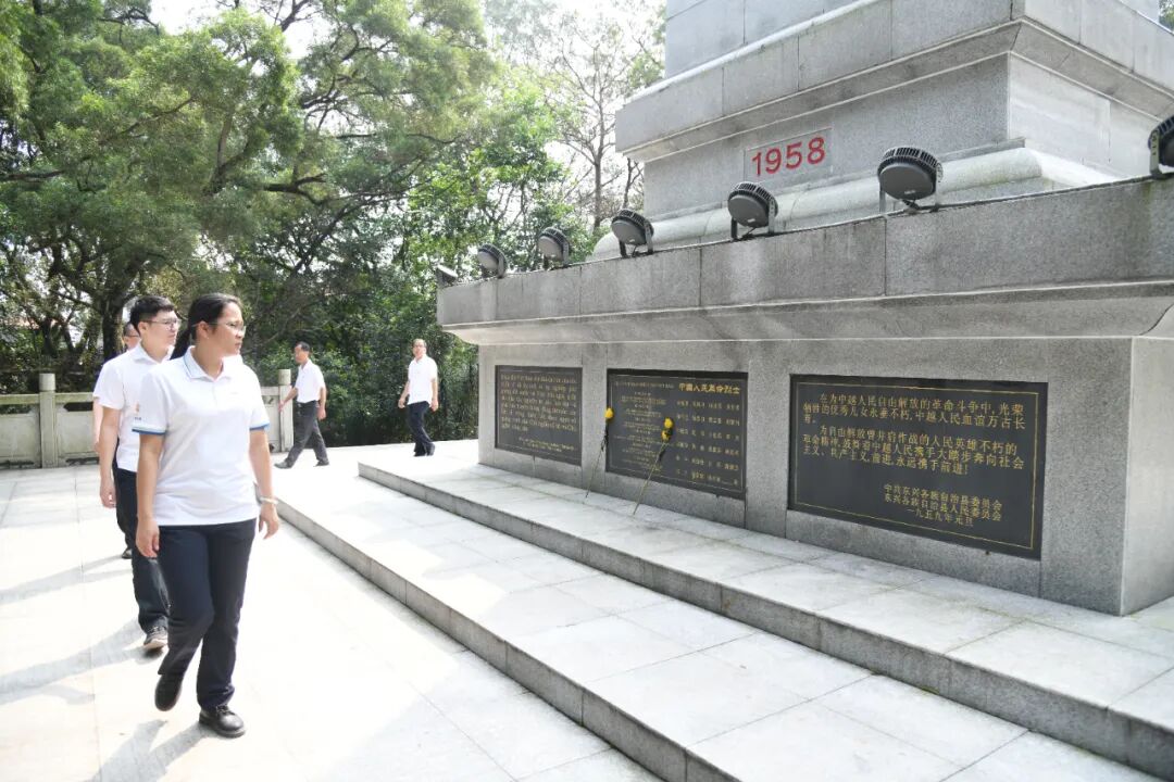 以案为鉴知敬畏,缅怀先烈忆初心。为持续推动廉洁文化建设,积极打造健康和可持续发展的清廉企业,近日,防城港环水公司赴东兴横江边境检查站廉政教育基地、中越人民革命烈士纪念碑、中共防城县第一支部——东兴支部纪念碑开展主题党日活动。