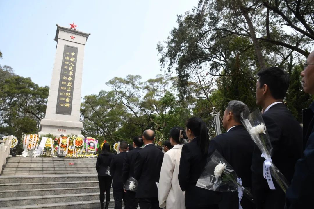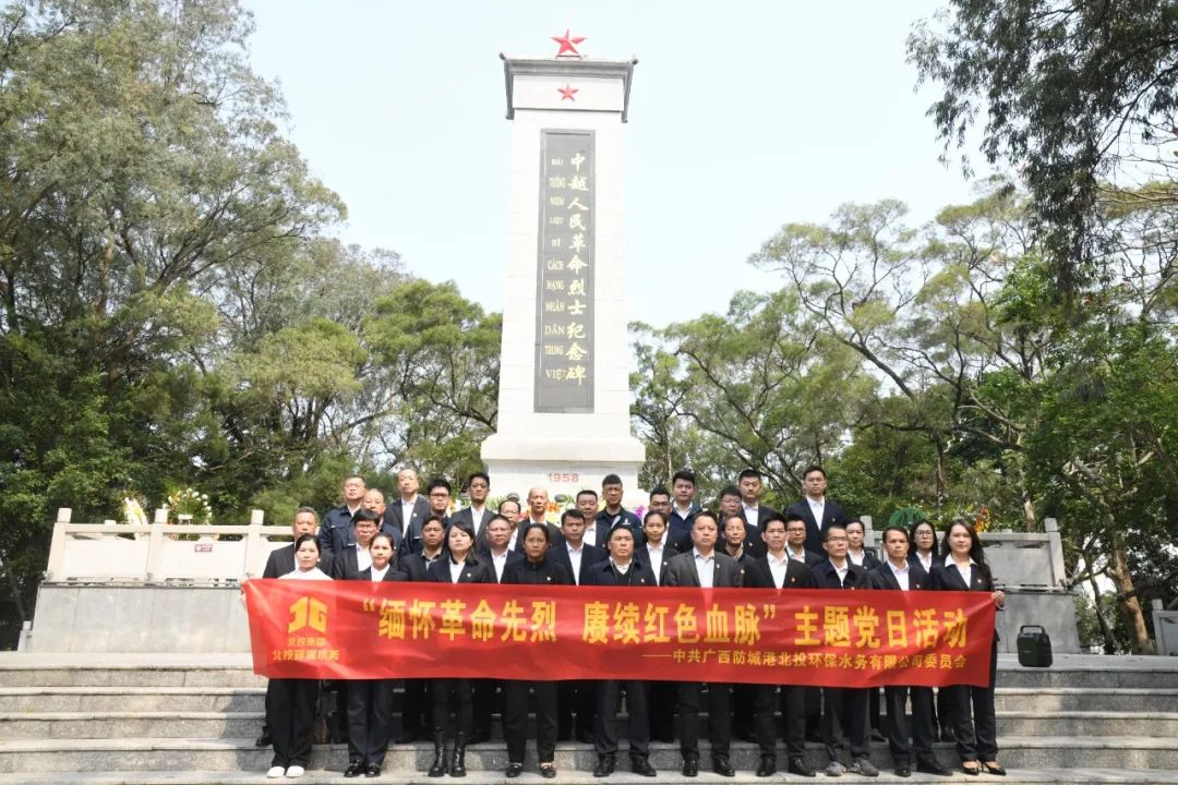 苍松翠柏,祭慰英灵。为传承红色基因,赓续精神血脉,引领广大党员坚定理想信念,激发干事创业的精气神,近日,广西防城港北投水务有限公司党支部、广旅防城港投资公司本部党支部、广旅东兴投资公司党支部、泽霖公司党支部前往东兴中越人民革命烈士纪念碑,联合开展“缅怀革命先烈 赓续红色血脉”主题党日活动,表达对革命先烈的深切缅怀。