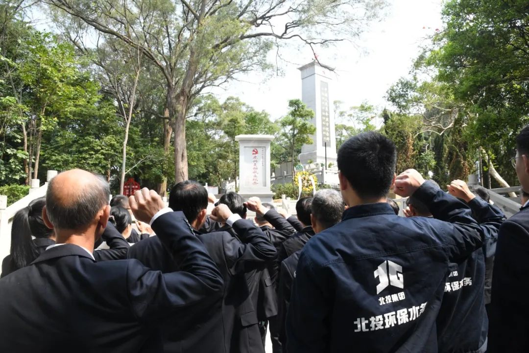 随后,全体党员同志在中共防城县第一支部纪念碑前重温入党誓词。誓言声中,党员们表达了对革命先烈的深切怀念,同时也彰显了他们将秉承英烈遗志,履行环保水务人新时代使命的信心和决心。