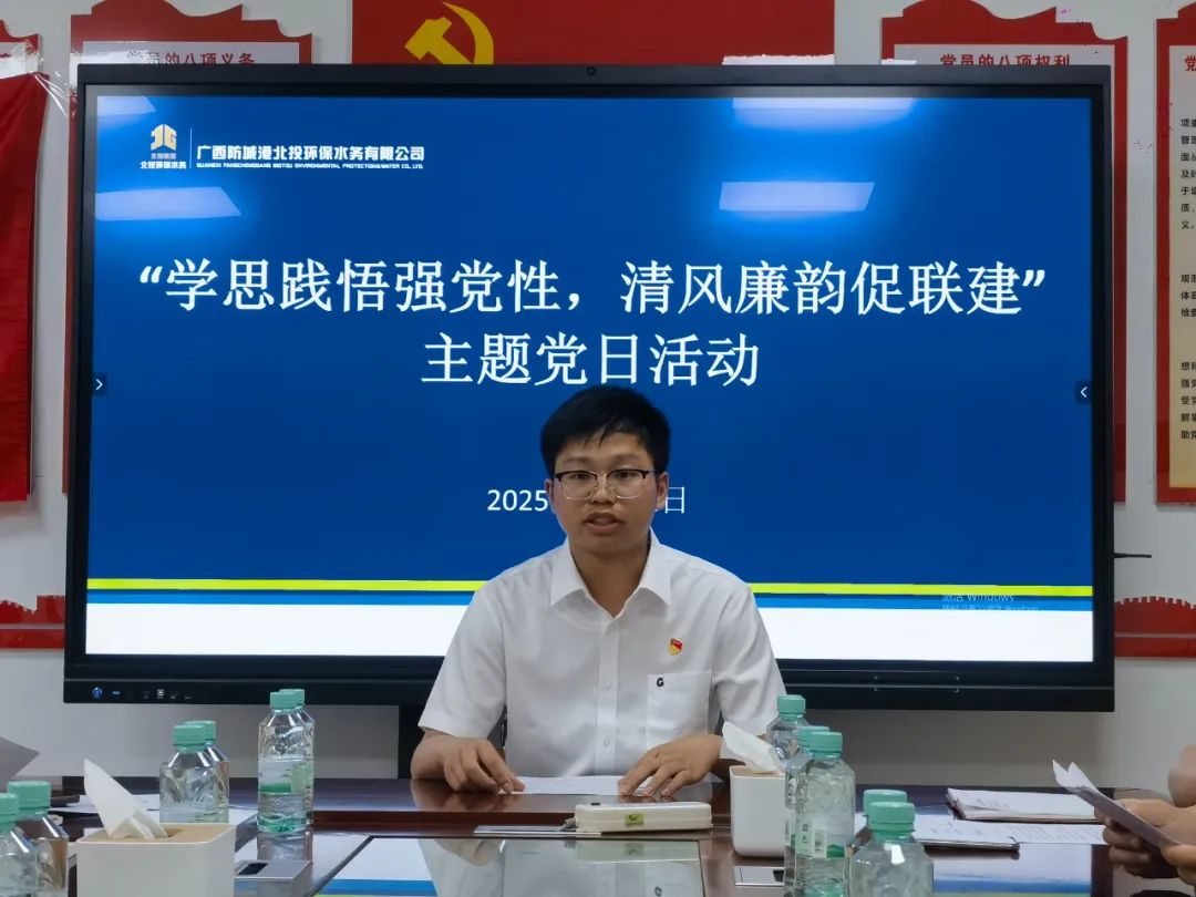 为深入贯彻中央八项规定精神学习教育,进一步强化党员的廉洁自律意识,筑牢拒腐防变的思想防线,5月22日,防城港环保水务公司营管中心党支部联合防城港码头公司生产保障部党支部精心组织开展了“学思践悟强党性,清风廉韵促联建”主题党日活动。此次活动内容丰富多元、形式精彩纷呈,为党员们呈上了一堂别开生面且意义深刻的党性教育与廉洁教育课。