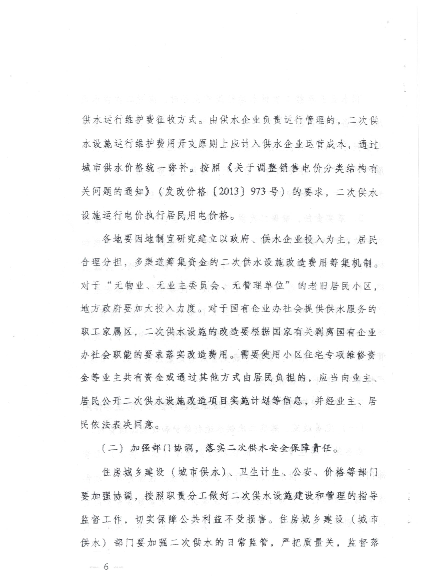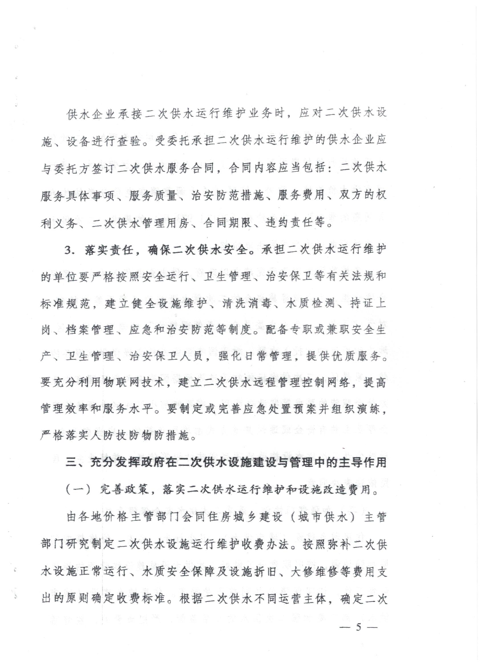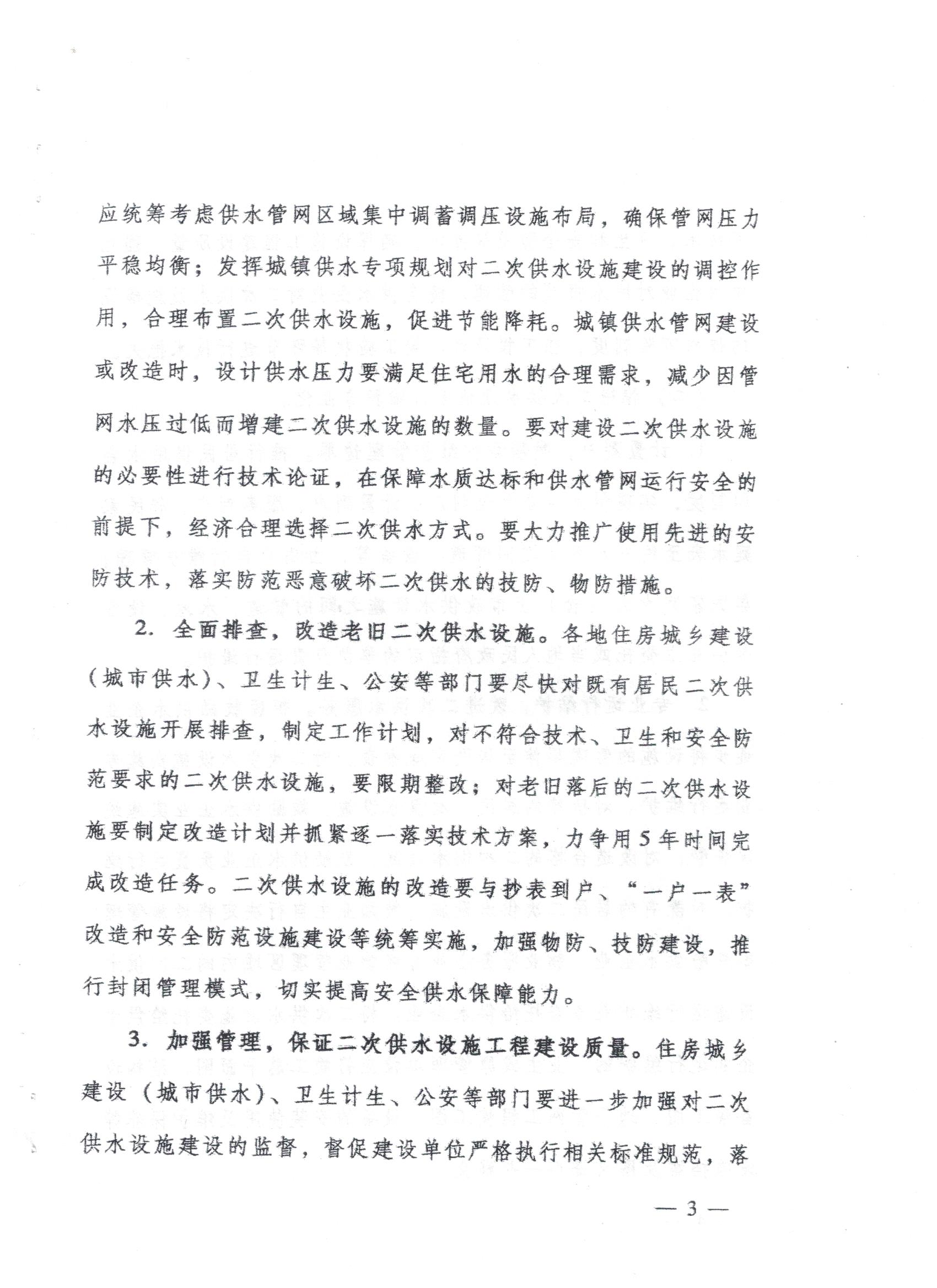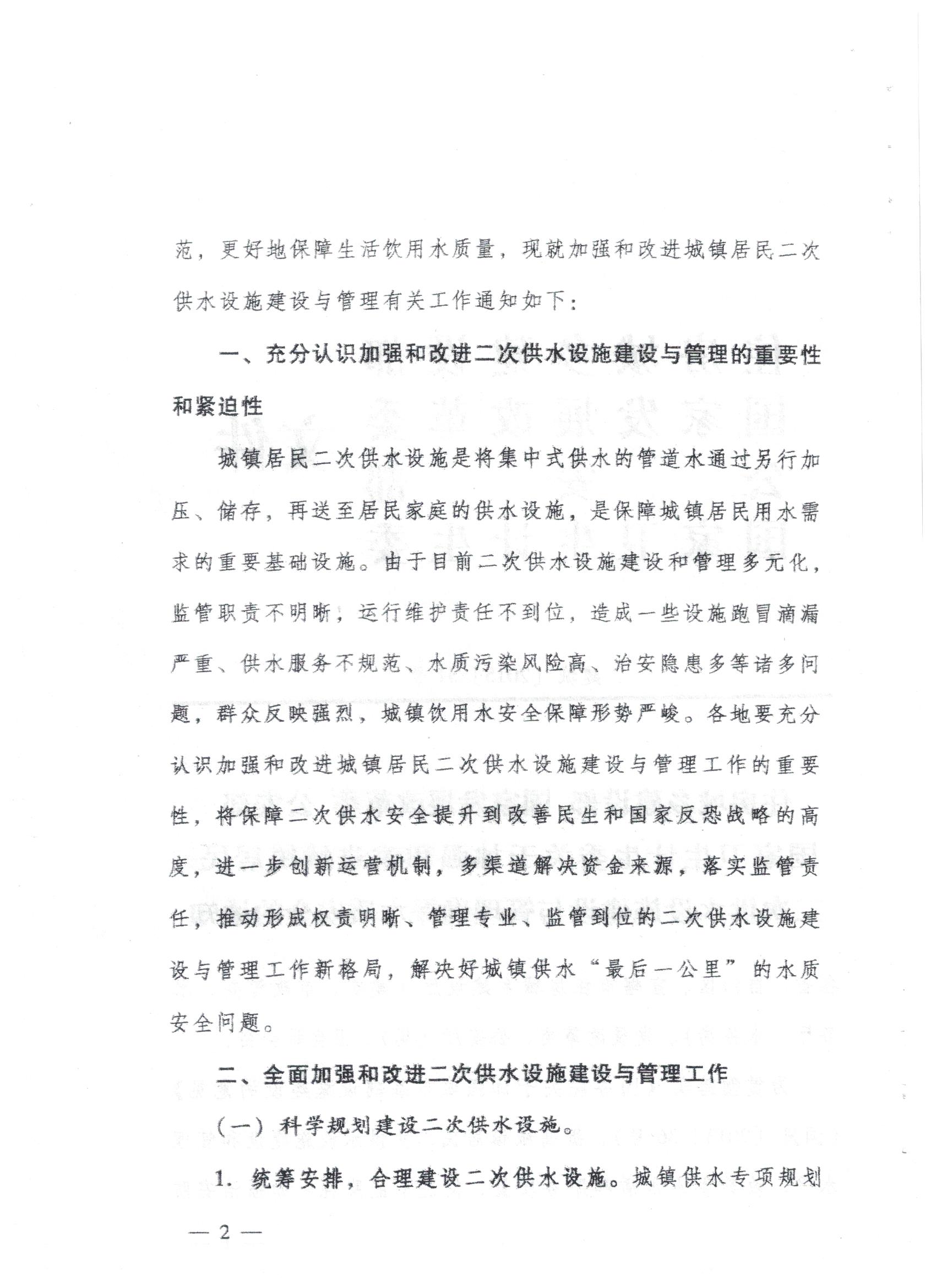《关于加强和改进城镇居民二次供水设施建设与管理确保水质安全的通知》(
