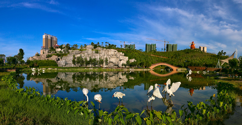 白鹭公园位于倒水坳大桥与迎宾路交汇处,公园占地12万余平方米,内设白鹭群雕、船型观景台、山顶瞭望塔、人工湖景点以及儿童海洋乐园、攀岩等游客项目。