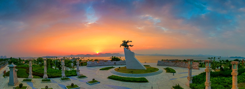 景区位于西湾跨海大桥西面桥头,分龙马广场和明珠广场两部分。其中白龙马雕像高19.93米,寓意防城港1993年建市,其状若出西湾,护佑港城,腾云驾雾,飞越沧海。明珠雕塑直径8.99米,高11.8米,由236块优质花岗岩组成球体,球体上双龙飞腾,勃勃生机,被誉为“边陲明珠”,是广西北部湾最雄壮美丽、最具有标志性的雕塑之一。