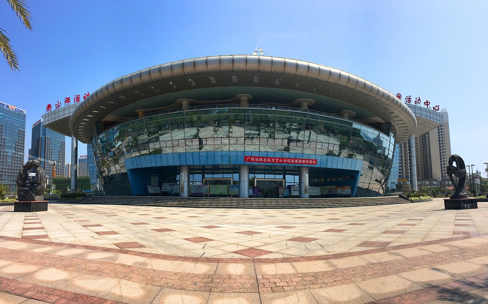 活动中心坐落于防城港市北部湾广场海洋文化公园东侧,建筑面积7567.7平方米,外观设计体现健康、现代、大方、活泼的理念,把贝壳的艺术造型加以提炼,以独特的仿生建筑学造型建造“西湾扇贝”,极具强烈的艺术感染力和冲击力。