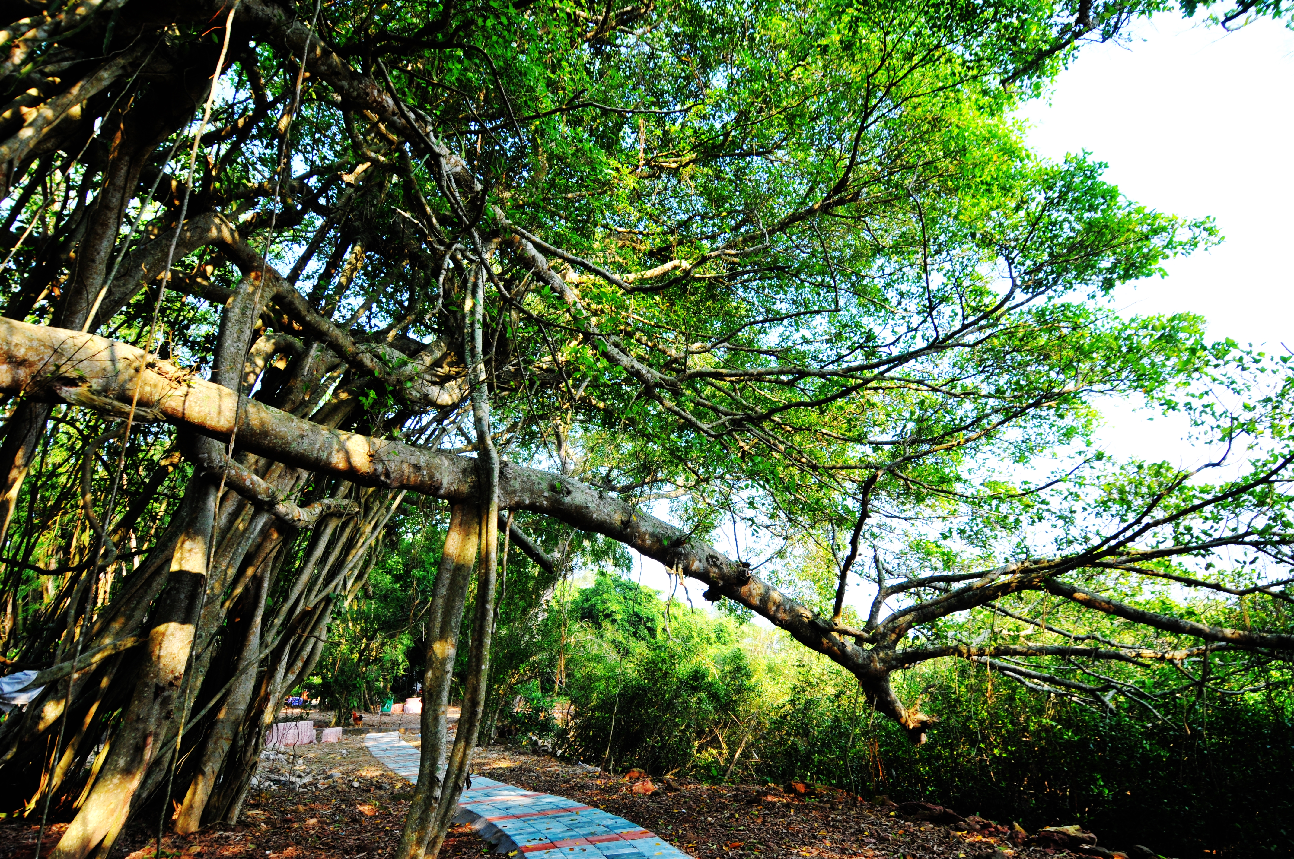 古榕部落是竹山八景之一,竹山别称“榕树头”,因村中一片古榕而得名。竹山古榕部落由一棵一千三百多年的古榕和众多小叶榕组成,古榕为高山榕,榕树高大挺拔,树干需十三个成人张开双臂才能合抱,树干中间有一树洞,大概可容纳七、八个人同时进出。