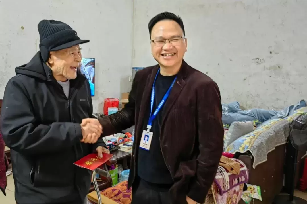 ▲党委副书记、院长禤坤(左一)慰问80岁以上老党员。