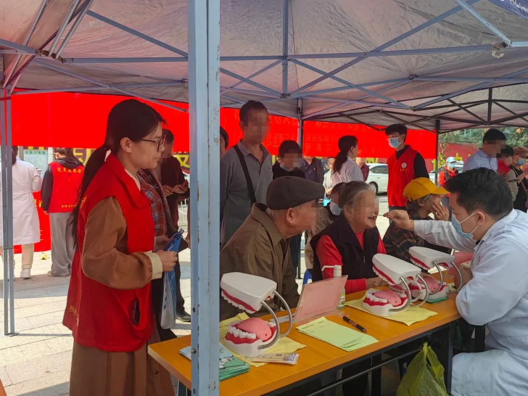 活动现场开展义诊,各位党员及专家们发挥各自的专业优势,耐心地解答群众的问诊咨询,免费提供测血压、测血糖及用药指导,还为现场群众宣讲医保新政策,普及民族团结共同体意识、健康科普及垃圾分类知识。党员志愿者发放宣传小册子,引导居民树立健康观念,建立健康生活方式,进一步提高群众的健康生活意识。