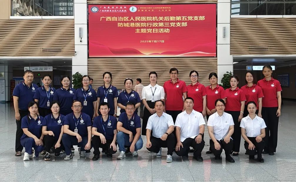7月17日,广西壮族自治区人民医院机关后勤第五党支部与防城港市第一人民医院行政第三党支部携手开展 “传承红色基因 创新发展护理” 主题党日活动,旨在深化党建引领,促进护理事业高质量发展。