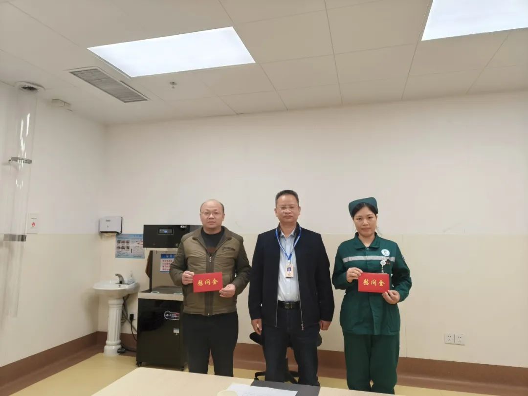 ▲常务副院长钟晓刚(右一)慰问在职职工。