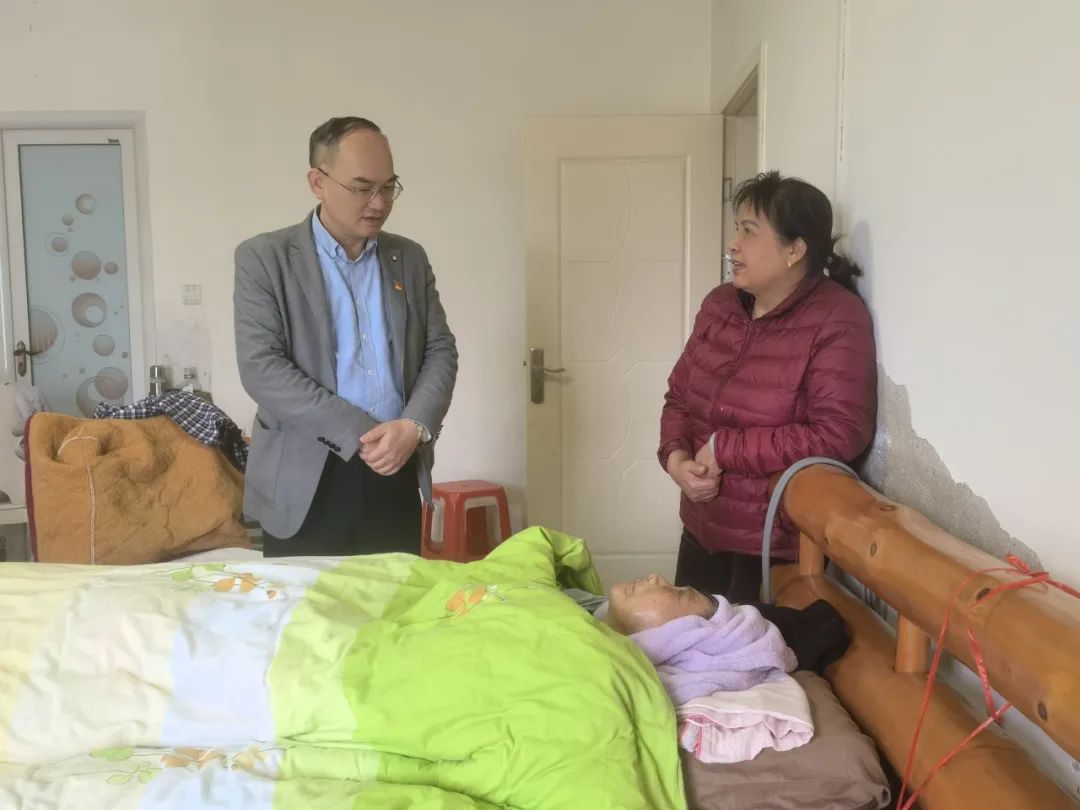 ▲党委书记陈永东(左一)慰问80岁以上老党员(家属代表)。