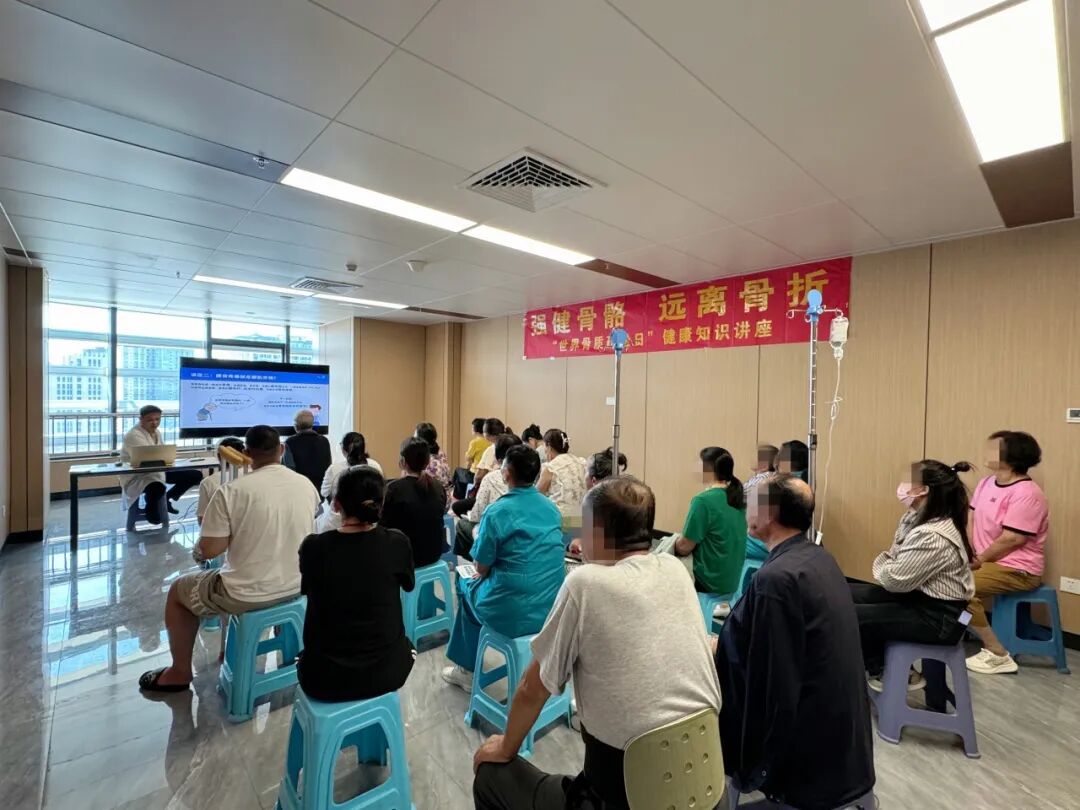 每年的10月20日是“世界骨质疏松日”,这是一个旨在提高全球对骨质疏松症认识和重视的纪念日。为了积极响应这一主题,提高公众对骨骼健康的关注,10月20日上午,我院文昌院区骨科一区在病房及候诊区,为在院的患者及家属举办了一场别开生面的骨质疏松健康知识讲座与宣传活动。