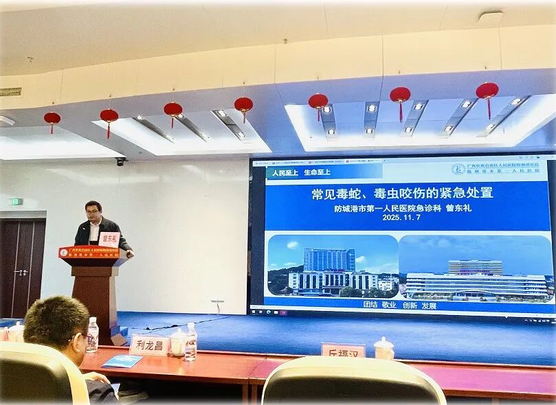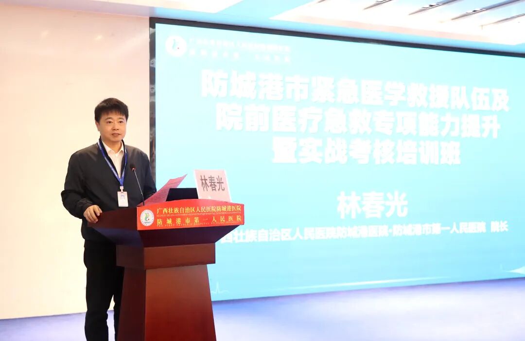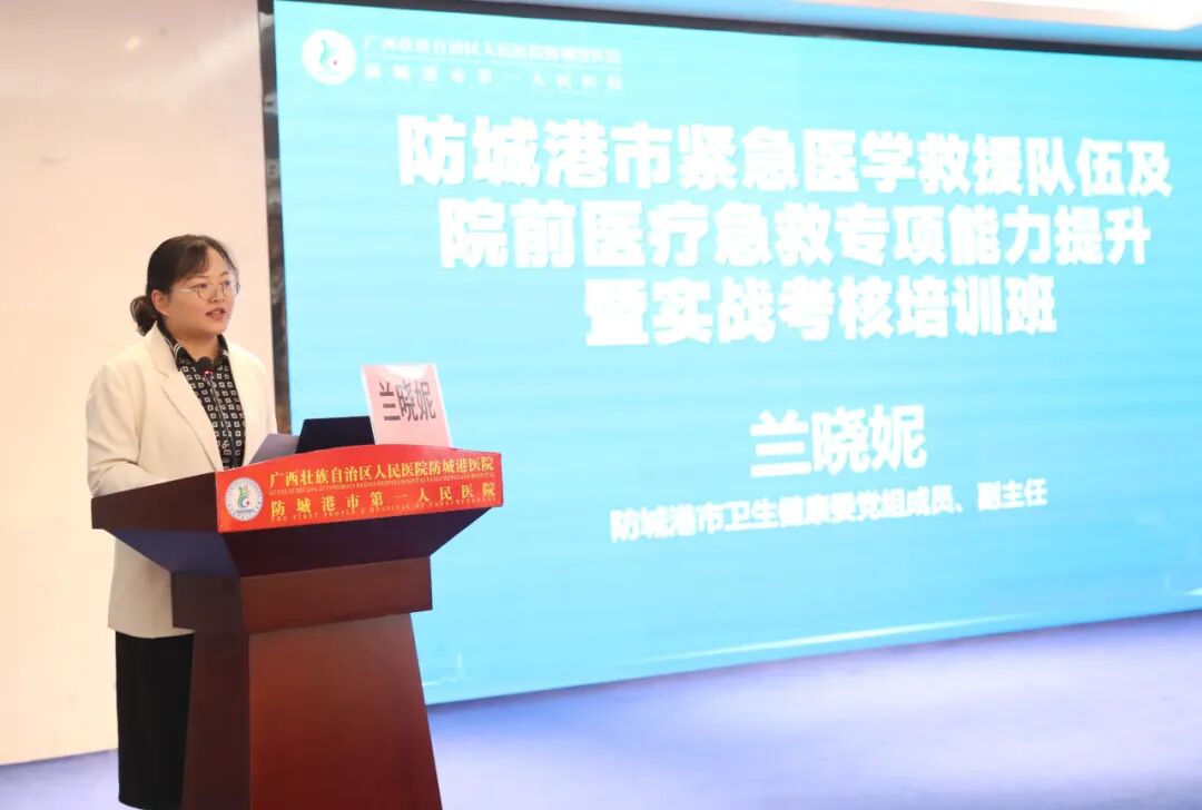 11月7日,由防城港市卫生健康委主办,我院承办的2025年防城港市紧急医学救援队伍及院前医疗急救专项能力提升暨实战考核培训班在文昌院区成功举行。市卫生健康委党组成员、副主任兰晓妮,我院院长林春光出席活动,培训班由我院副院长黄鹏主持。本次培训云集了全市紧急救援队伍、院前医疗急救质控中心委员会全体成员,以及各县(市、区)卫生健康局、医疗机构(含各乡镇卫生院)院前急救人员,共同探讨学习院前急救领域的前沿技术及规范化诊疗策略。