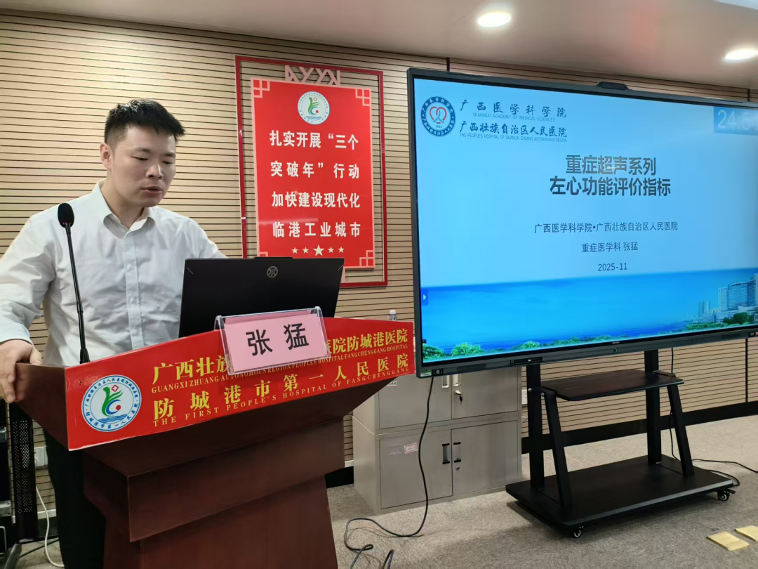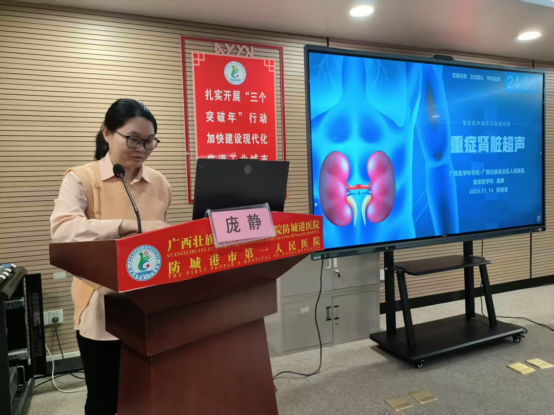 为进一步推动重症超声技术在临床实践中的规范化应用,提升重症医学领域医护人员的诊疗能力与技术水平,11月14日,由防城港市医学会重症医学分会主办、我院承办的“ICU核心技术-重症超声临床应用新进展和实践培训班”在文昌院区门诊楼五楼第二会议室成功举办。本次培训聚焦重症超声的前沿理论、实操技巧与临床案例,采用“理论授课+病例展示+实操演练”的多元化模式,吸引了来自南宁、钦州、防城港、北海、平果、凭祥、贵港、桂平等地区医疗机构60余名医护人员参加。