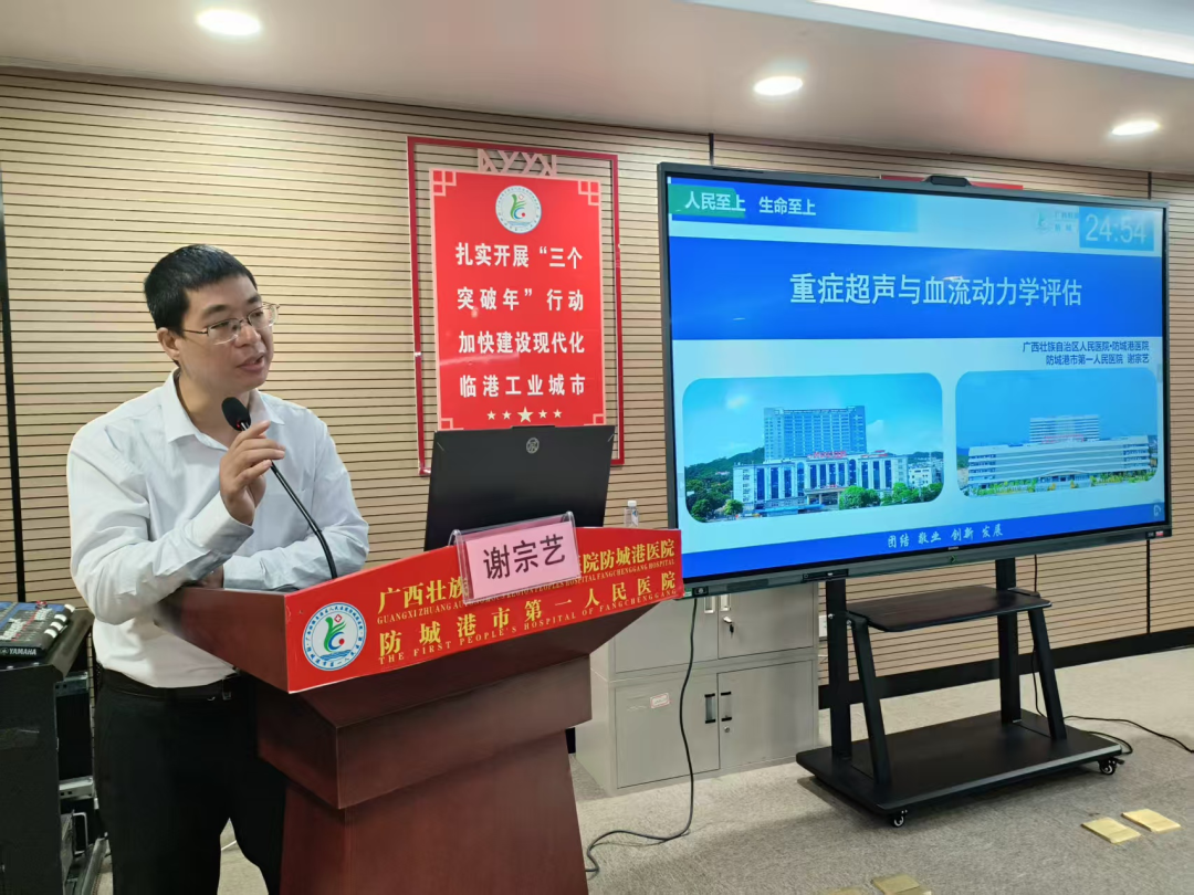 广西壮族自治区人民医院重症医学科二病区副主任、防城港市重症医学质量控制中心主任委员、防城港市医学会重症医学分会主任委员秦文波主任医师讲话。