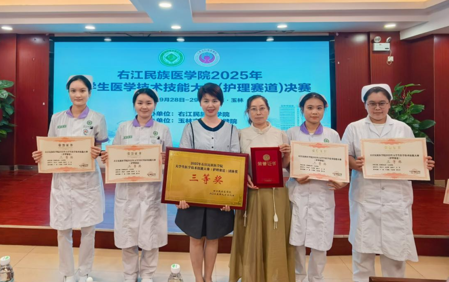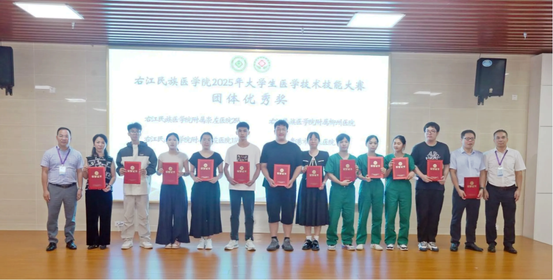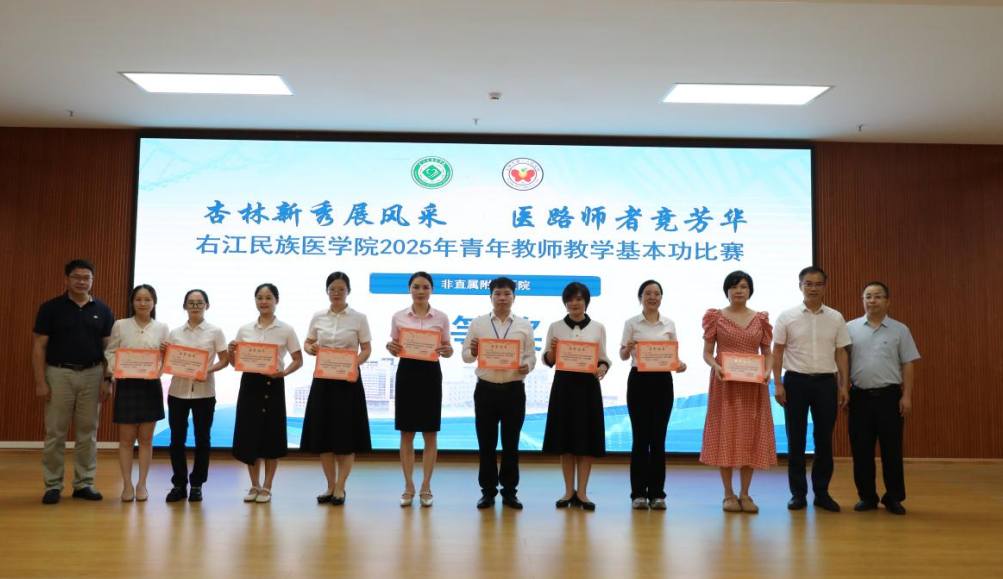 近日,右江民族医学院举办的2025年青年教师教学基本功比赛等赛事圆满落幕,我院教师与医护团队凭借扎实的专业素养和出色的综合能力,在多个赛道中脱颖而出,共获三项荣誉,充分展现了我院在医学教育与临床实践领域的坚实基础。