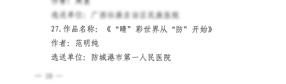 近日,2025年“广西三月三”健康文化作品征集活动评选结果正式公布,我院眼科精心创作的视频类作品《“睛”彩世界 从“防”开始》凭借优质内容与创新形式脱颖而出,斩获视频类二等奖。