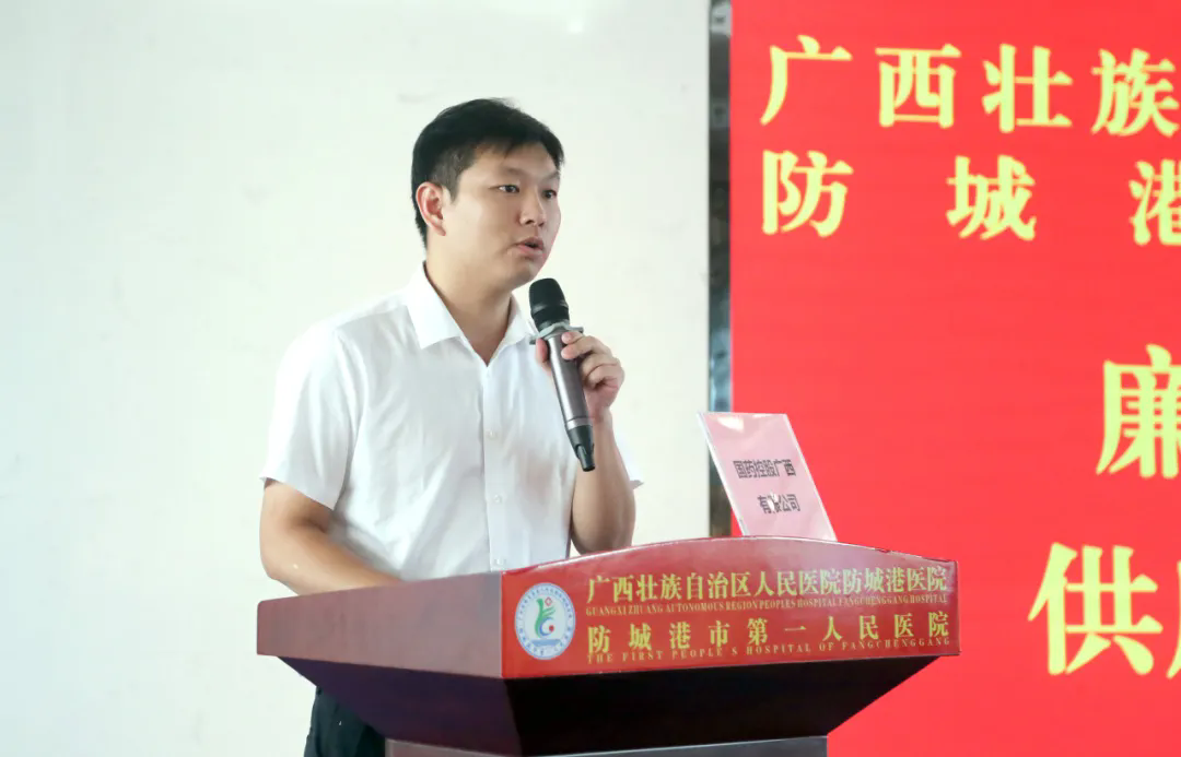 会议还组织学习了《清廉广西建设提质增效三年行动方案(2024—2026年)》《医药代表院内拜访工作人员管理制度》《供应商黑名单制度》。随后,2家供应商代表作表态发言,所有参会代表签订并提交《廉洁购销承诺书》《工程项目廉洁承诺书》,医院重点岗位人员代表也在会上签订了《廉洁采购承诺书》,承诺在工作中严格遵守相关法律法规,坚持公正、公开、公平的原则,确保医疗采购过程的清正廉洁。