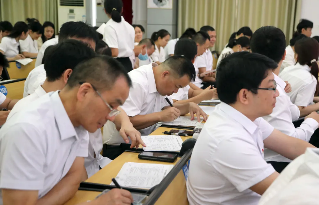 为庆祝建党103周年,进一步培育和践行社会主义核心价值观,树立先进典型,提升党组织活力,带领广大青年永远跟党走,激发全院党员干部以更加饱满的热情投入到工作实践中去,加快自治区级区域医疗中心建设工作。6月25日下午,我院召开主题为“红色正风·绿色清风”的“七一”庆祝大会暨道德讲堂活动。我院党委书记陈永东,党委副书记、院长禤坤,党委副书记、纪委书记许兆祥等党委领导,全体党员、团员等共300余人参加了大会。