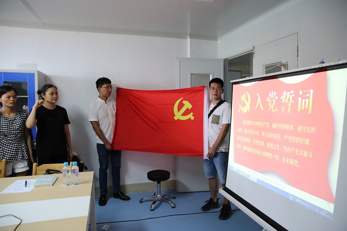 紧接着,全体党员起立,举起右手,重温入党誓词并齐唱红歌《团结就是力量》。“我志愿加入中国共产党,拥护党的纲领,遵守党的章程……”、“这力量是铁,这力量是钢……”,重温铿锵有力的入党誓言、高唱慷慨激昂的红歌,让党员们进一步坚定了理想信念,更加恪守对党的誓言。