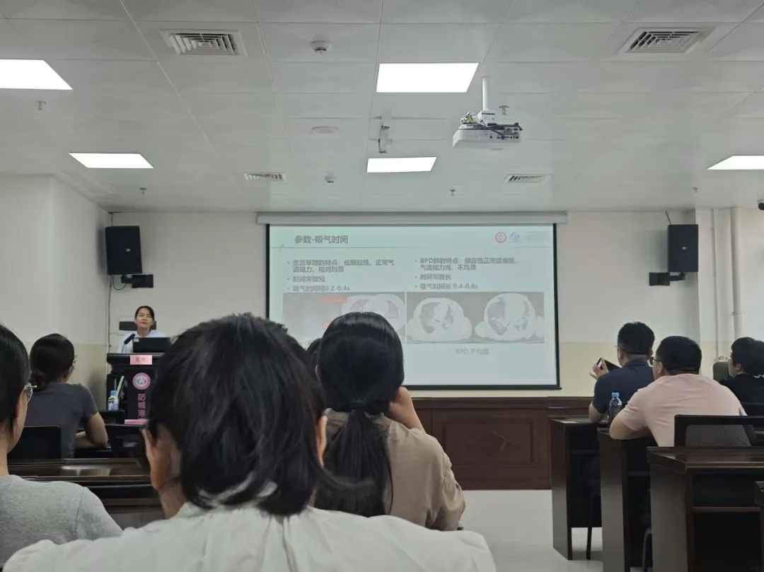 莫艳副主任医师结合多年临床诊疗经验,围绕早产儿呼吸管理与呼吸机灵活运用、营养支持、感染防控、神经发育监测及出院后随访等关键环节进行系统、细致的讲解。授课内容紧密贴合基层临床实际需求,兼具专业性、实用性与指导性,通过诊疗规范深度解读与实操要点精准分享,为我市儿科、新生儿科医护人员传递了前沿诊疗理念,提供了规范化管理思路。