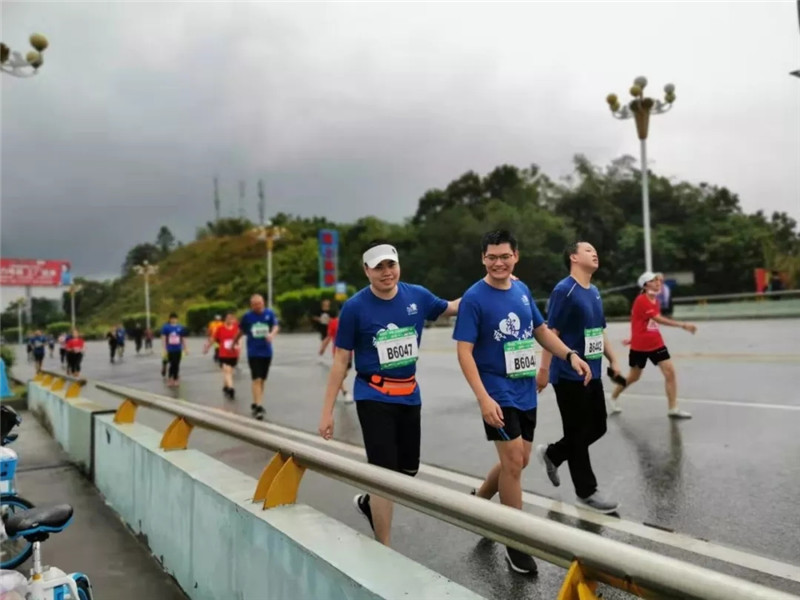 参加半马、全马的运动员在途中遇到几次大雨,但坚定的决心以及一路的加油声让他们坚持了下去。勇于挑战、坚持不懈的他们代表了妇幼人的精神!