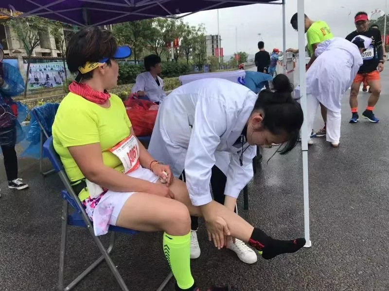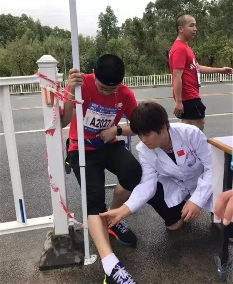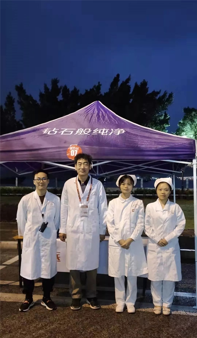 以黄志强院长为带队领导的医疗队在7号医疗站(15km处)等候着参加半马、全马比赛的运动员们。