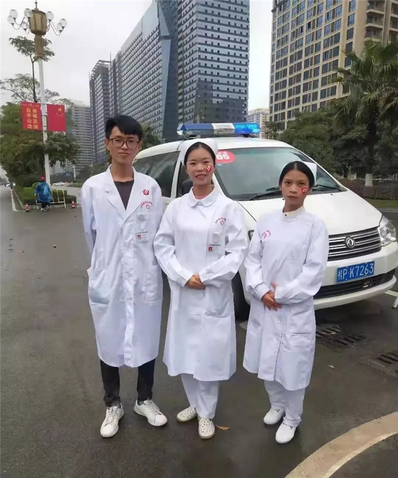 市妇幼保健院在5号救护车(3.5km处)的医务人员。