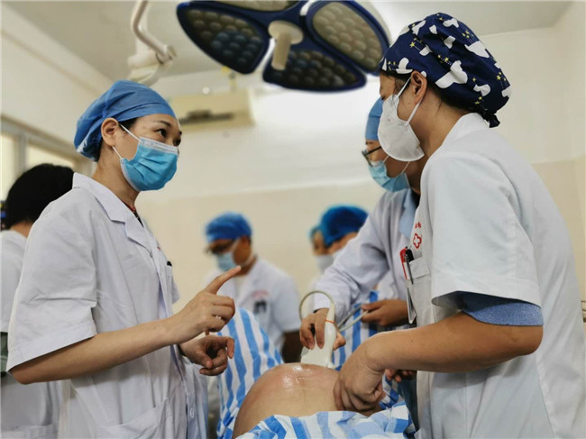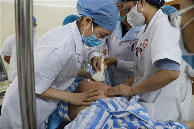 7月3日,广西壮族自治区妇幼保健院夏红卫主任和龙俊青主任到我院进行工作指导。陈女士当天出现了不规则宫缩、腹部肌肉较紧、胎儿偏大且为混合臀先露等因素。经过龙俊青主任的详细评估后,认为陈女士臀位外倒转术的风险及成功机率较低,但陈女士及家人仍然希望可以尝试一下。在做了充分的准备后,龙俊青主任给陈女士进行臀位外倒转术,我院B超医生全程监护,整个过程仅仅持续了数分钟,龙主任以娴熟细致的手法让宝宝翻了个身,顺利转成了“头位”!当告知陈女士宝宝已转为头位,胎心、胎盘正常时,陈女士激动不已,说:“太神奇了,感谢龙主任,感谢防城港市妇幼保健院妇产科团队!谢谢你们让我完成心愿,拥有了阴道分娩的机会!”