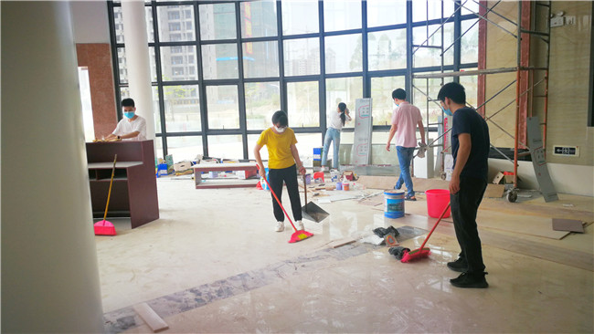 党员、入党积极分子及入党申请人参加了此次义务劳动大家扫帚在手,抹布在握,从上至下一层一层认真打扫,有的扫蜘蛛网,有的擦窗子,有的拖地,有的清洗抹布及拖把……闷热的天气让大家汗流浃背,但丝毫不影响大家的干劲。经过一上午的劳动,新院很多地方焕然一新,看着自己的劳动成果,大家露出了会心的微笑。