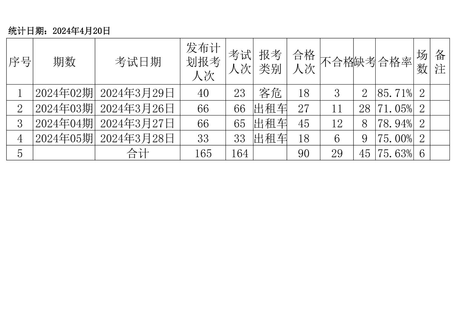 2024年3月道路运输驾驶员从业资格考试情况统计表