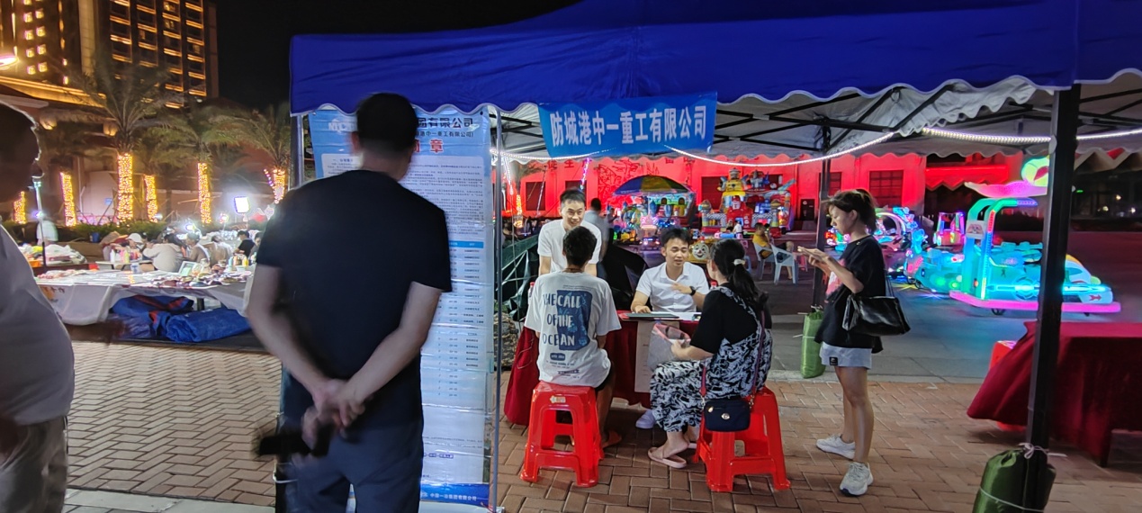 8月28日晚,北部湾海面波光粼粼,防城港市港口区“北港故里”文化广场流光溢彩、人流如织,与往日不同,广场沿海人行通道上出现了一些特殊的“摊位”,2023年广西高校毕业生“留桂就业计划”暨防城港首届人才招聘夜市正在这里火热进行,吸引了众多求职者前来咨询应聘。招聘会上,共有21家企业参加,涉及商贸物流、机械化工、医疗康养、物业和销售等多领域,提供就业岗位近806个。招聘会吸引了400多人参加,现场达成就业意向87人,为用人单位和求职者搭建了新颖又接地气的交流平台,赢得了广泛好评。