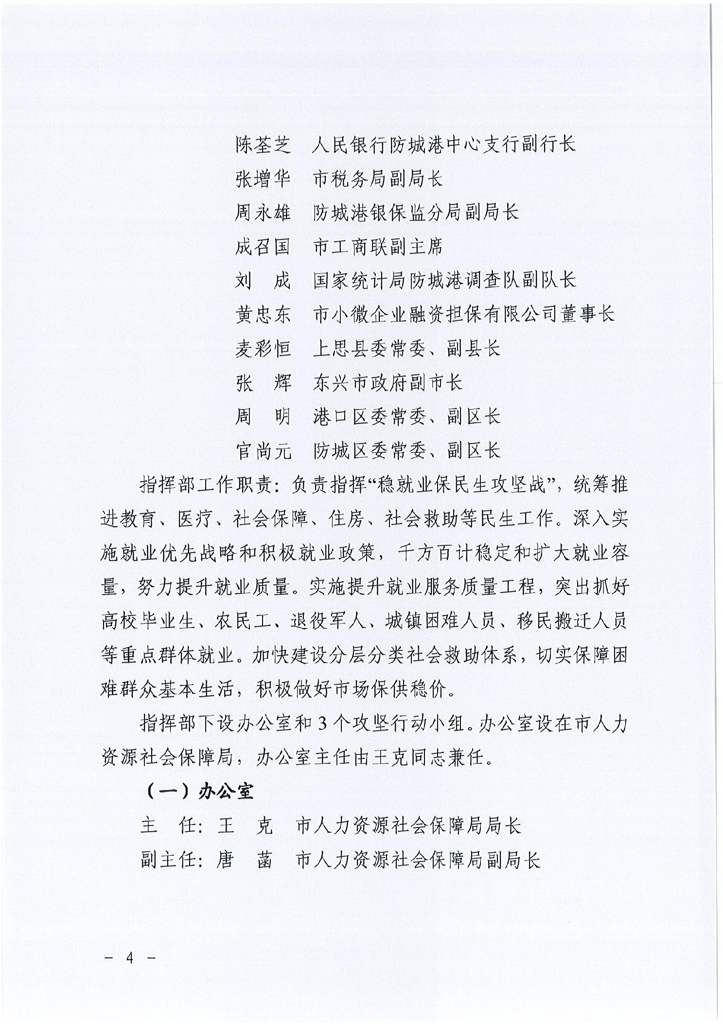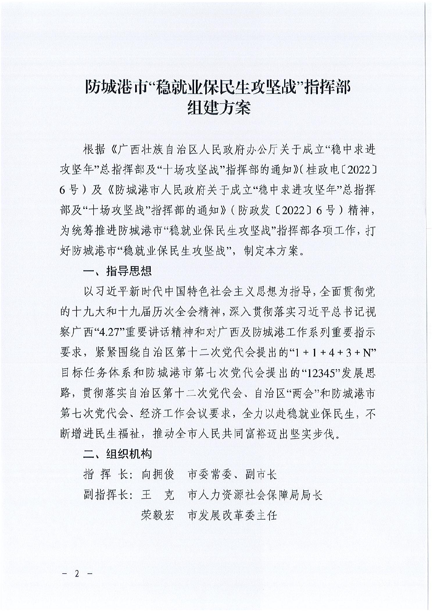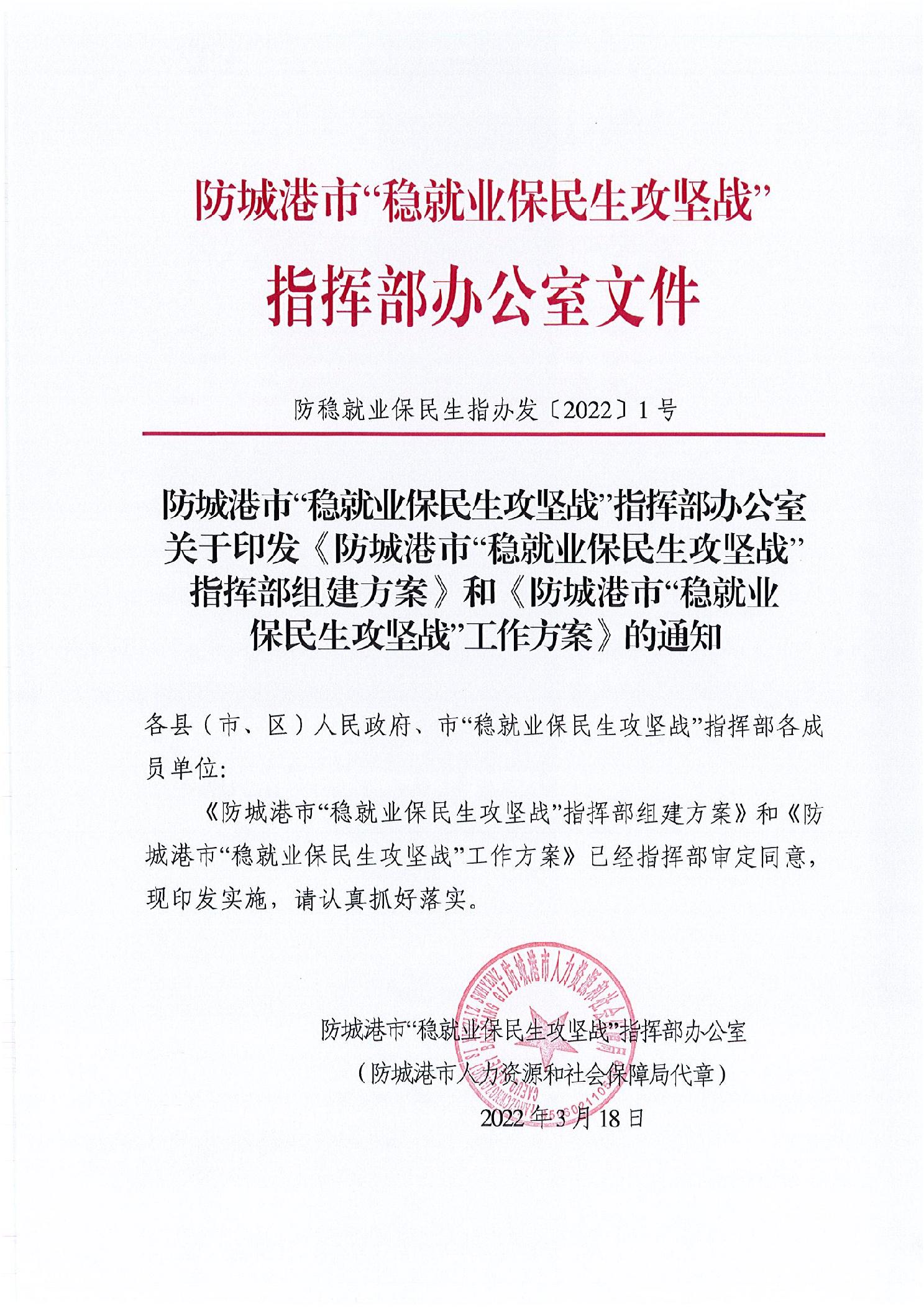 防城港市“稳就业保民生攻坚战”指挥部办公室关于印发《防城港市“稳就业保民生攻坚战”指挥部组建方案》和《防城港市“稳就业保民生攻坚战”工作方案》的通知