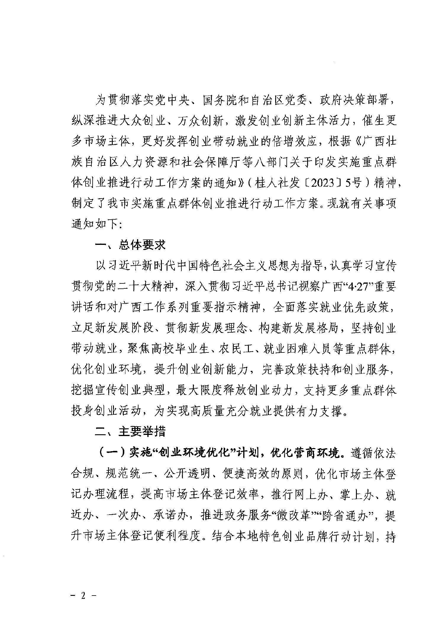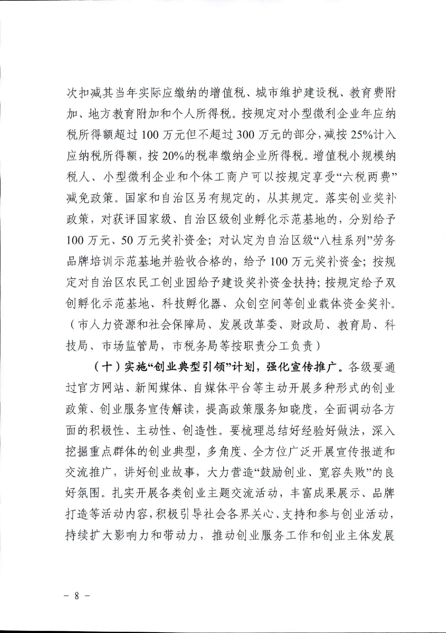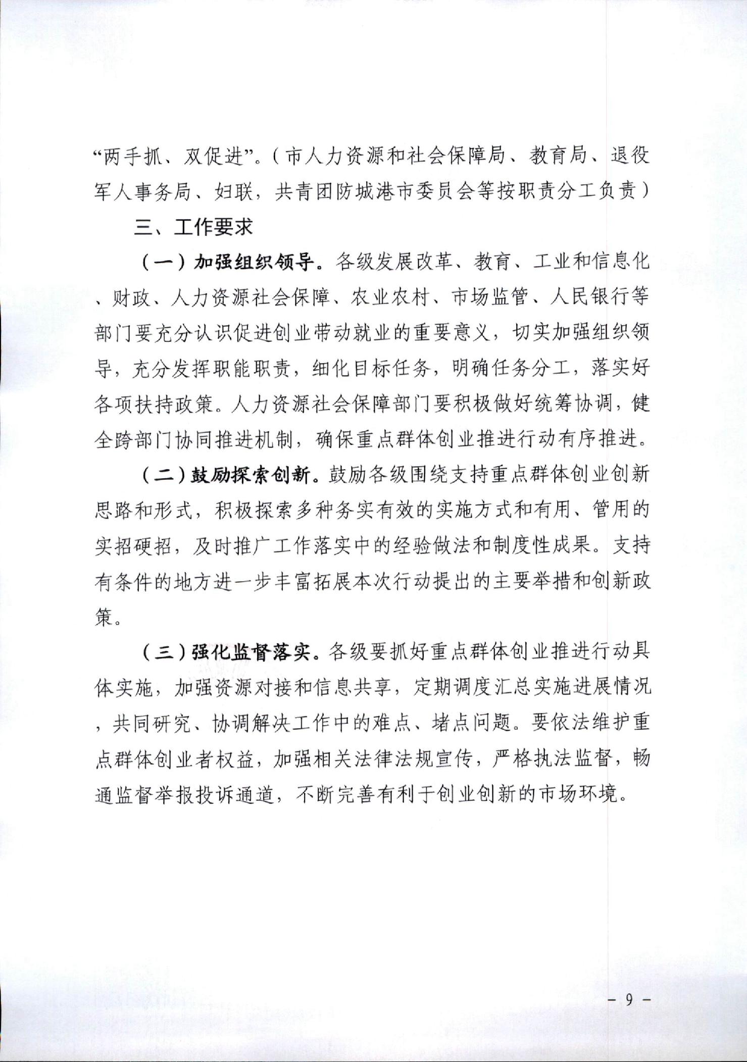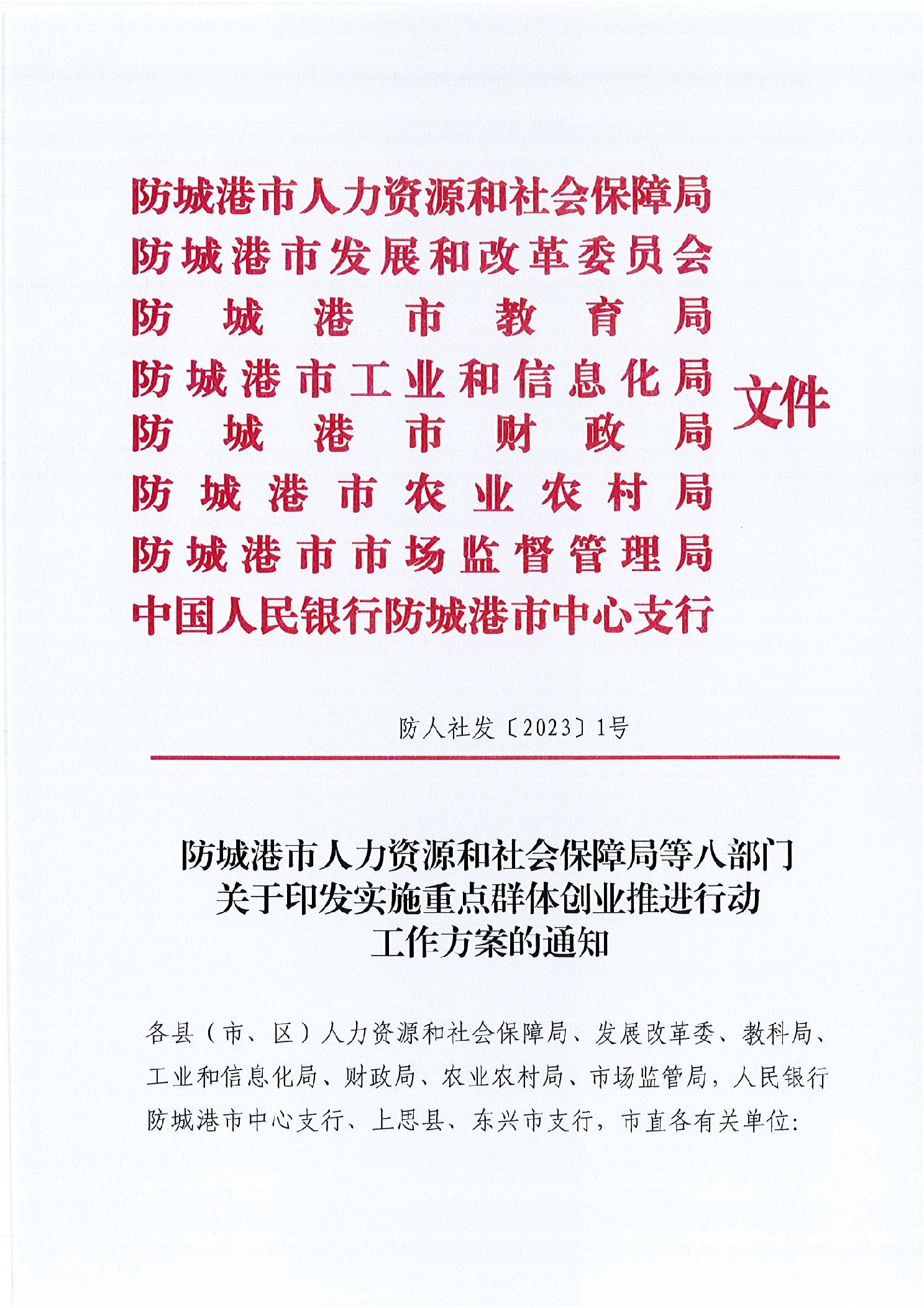 防城港市人力资源和社会保障局等八部门关于印发实施重点群体创业推进行动工作方案的通知