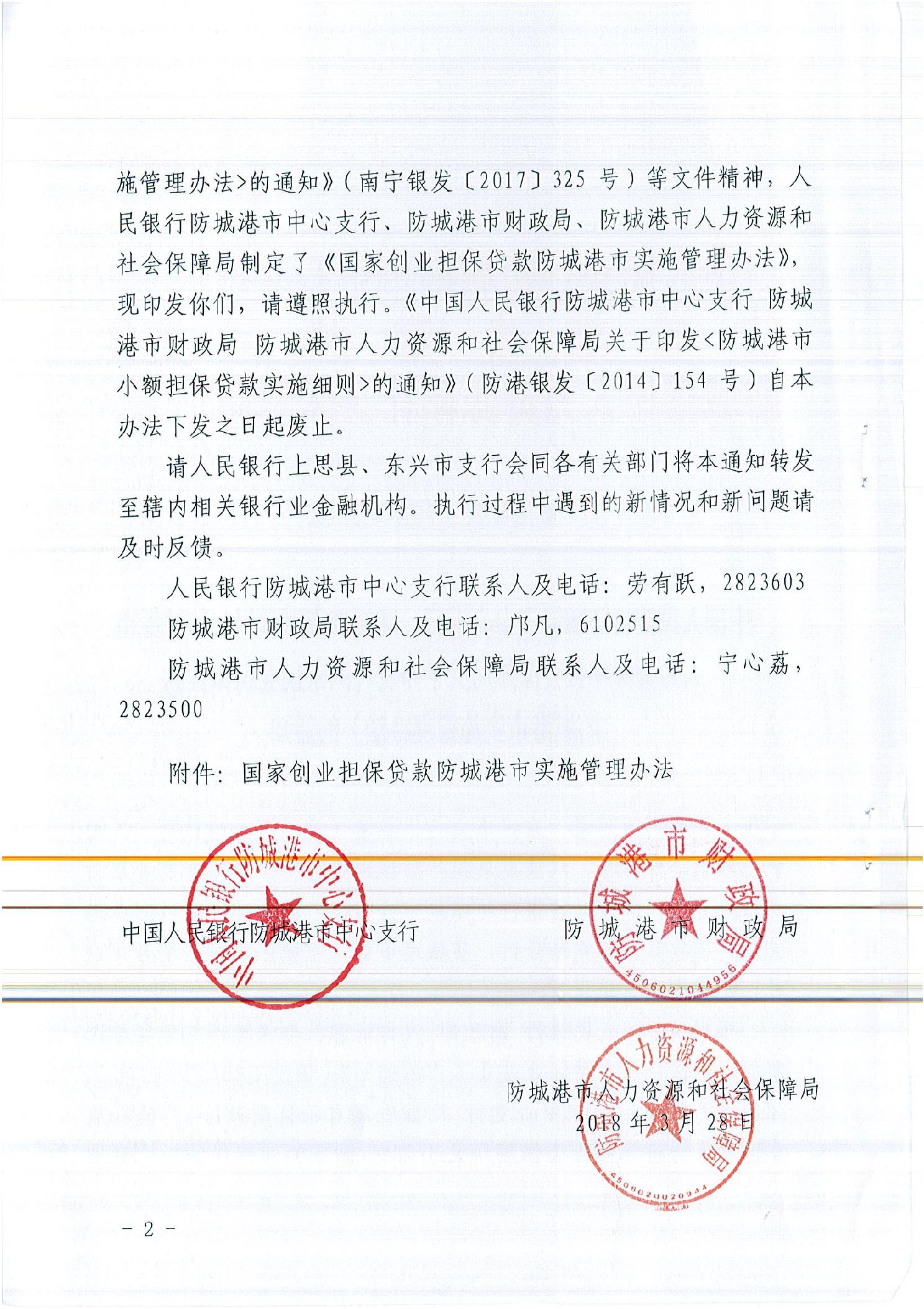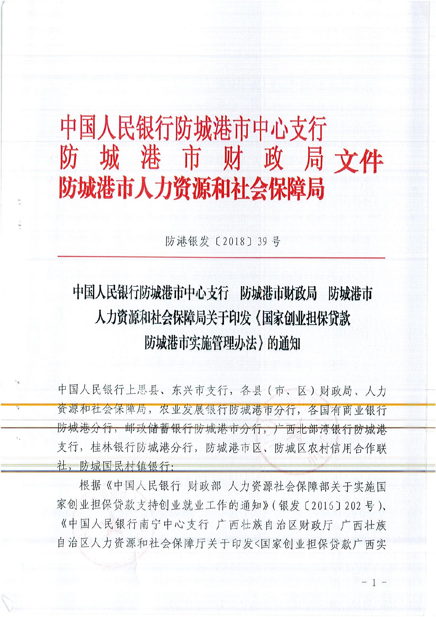 防港银发〔2018〕39号关于印发《国家创业担保贷款防城港市实施管理办法》的通知