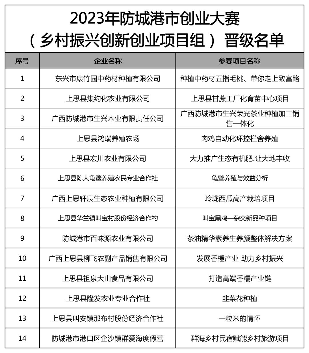 2023年防城港市创业大赛初赛结果发布,29个项目晋级决赛!