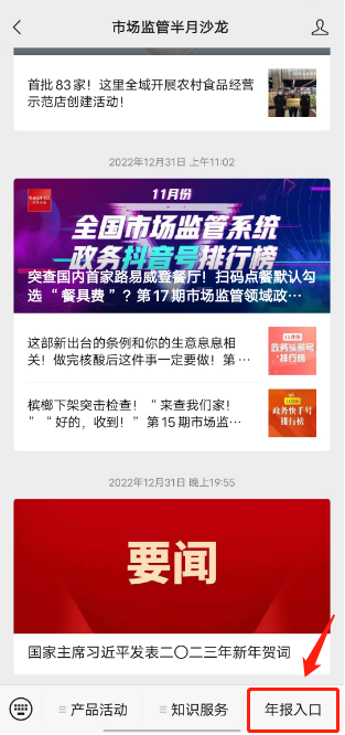 关注“市场监管半月沙龙”微信公众号,点击下方菜单栏【年报入口】即可年报。