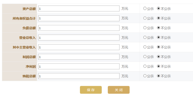7.企业从业人数、资产总额、负债总额、对外提供保证担保、所有者权益合计、营业总收入、主营业务收入、利润总额、净利润、纳税总额信息。(该项可选)