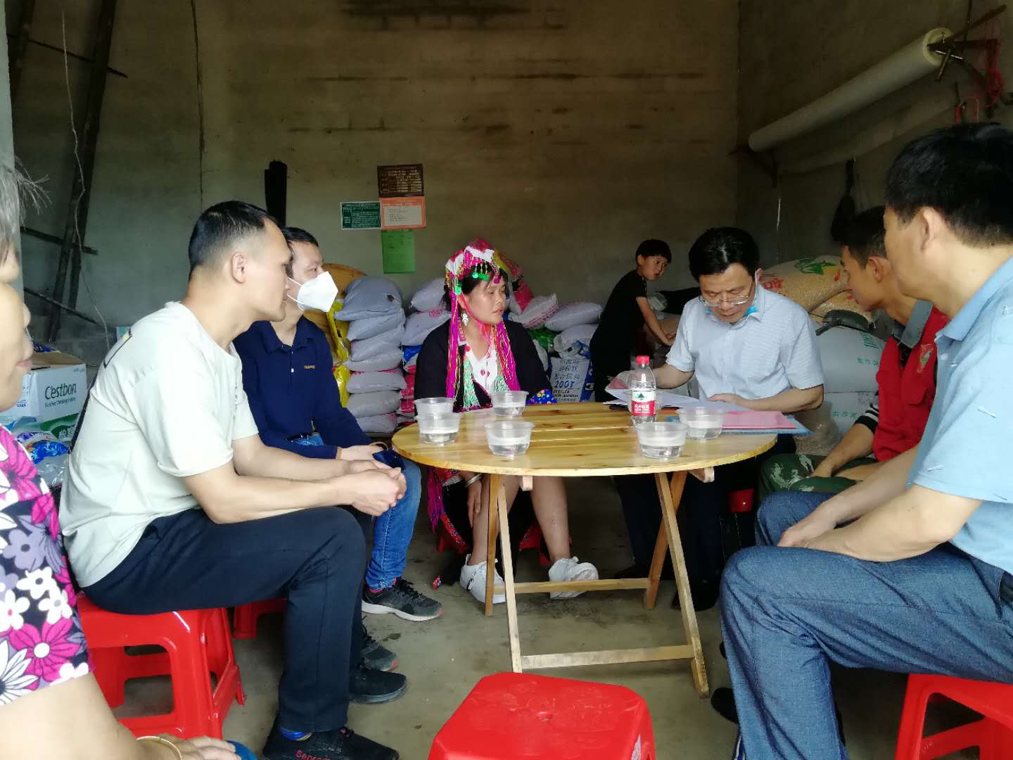 图为市社保局、市就业中心工作人员入村进行“手把手”业务指导