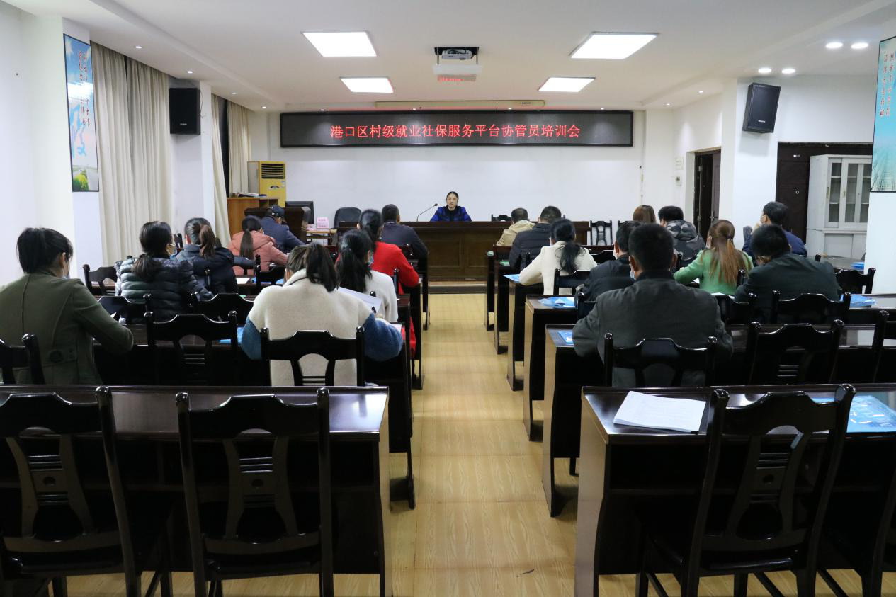 图为港口区人社局组织协管员集中业务培训