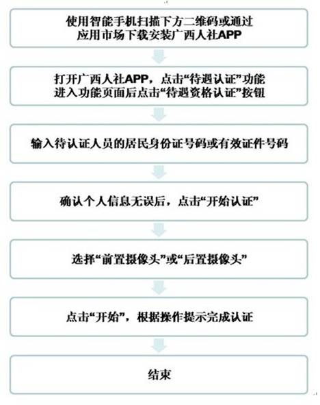 (一)通过智能手机扫描二维码或通过应用市场下载安装“广西人社”APP。(见流程图)