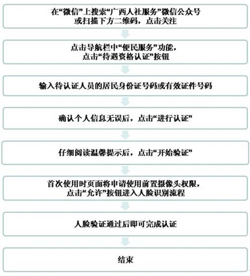 (二)通过智能手机扫描二维码或搜索关注“广西人社服务”微信公众号。(见流程图)
