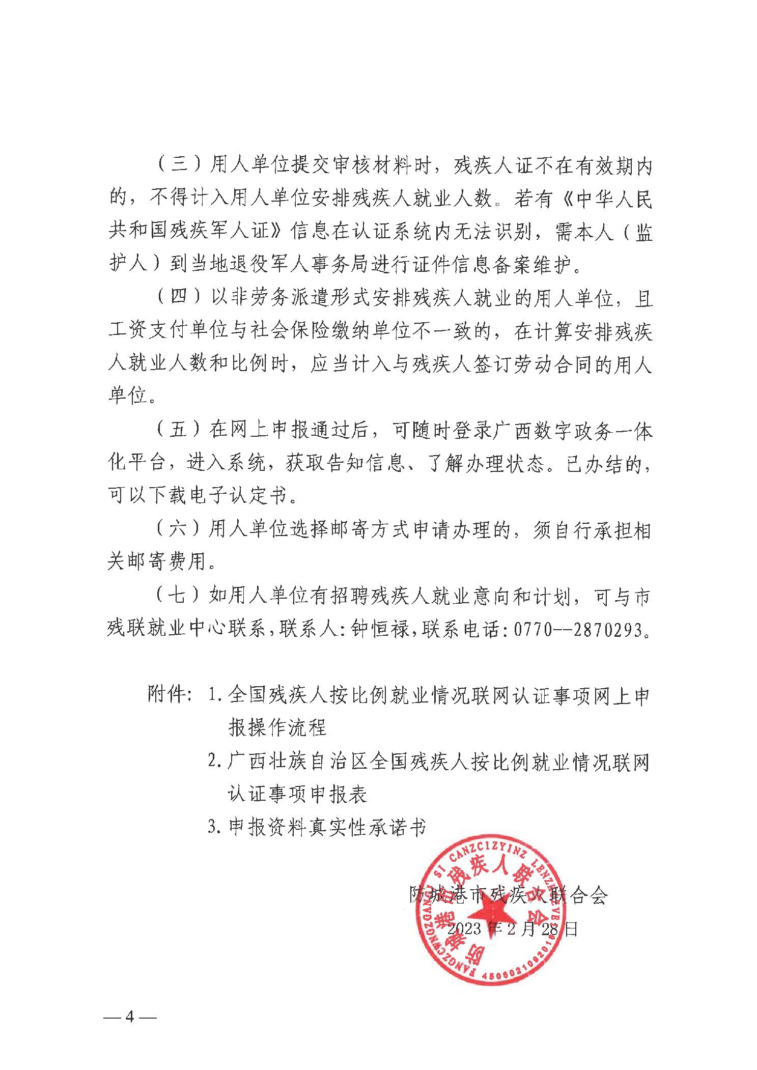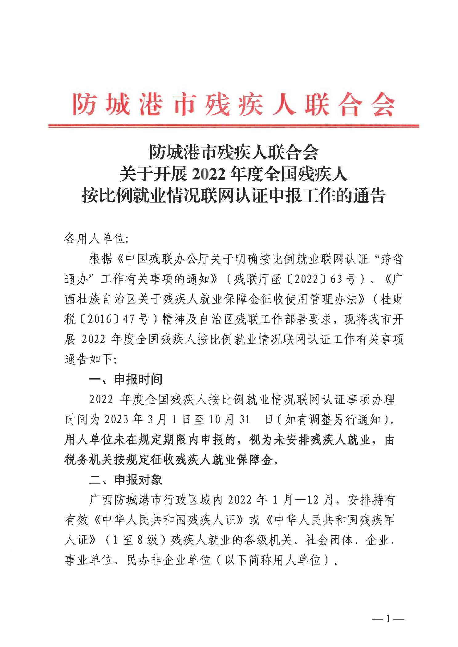 防城港市残疾人联合会关于开展2022年度全国残疾人按比例就业情况联网认证申报工作的通告