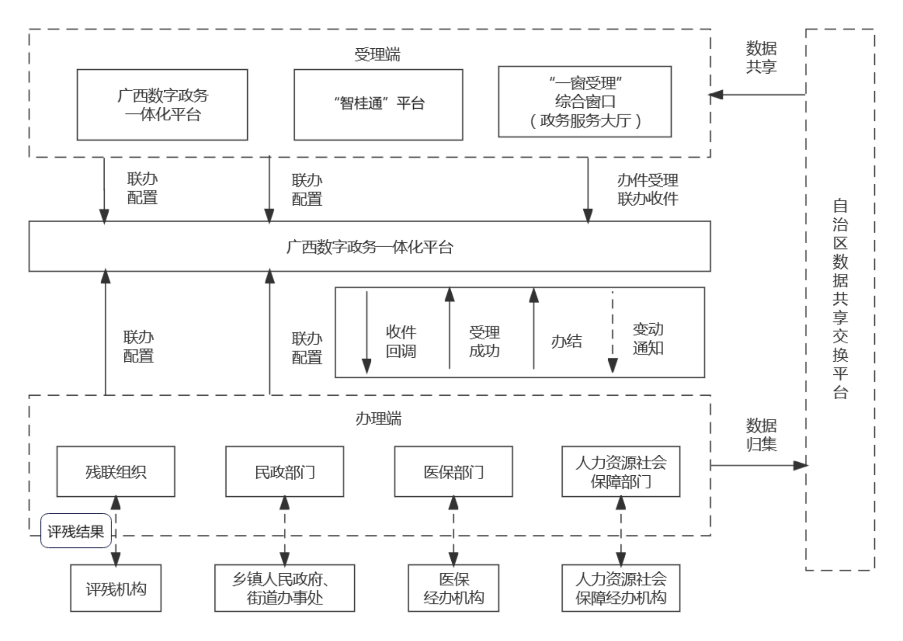 ①推动残疾评定流程与广西数字政务一体化平台、“智桂通”平台等平台的对接,实现评残信息流转、数据共享;