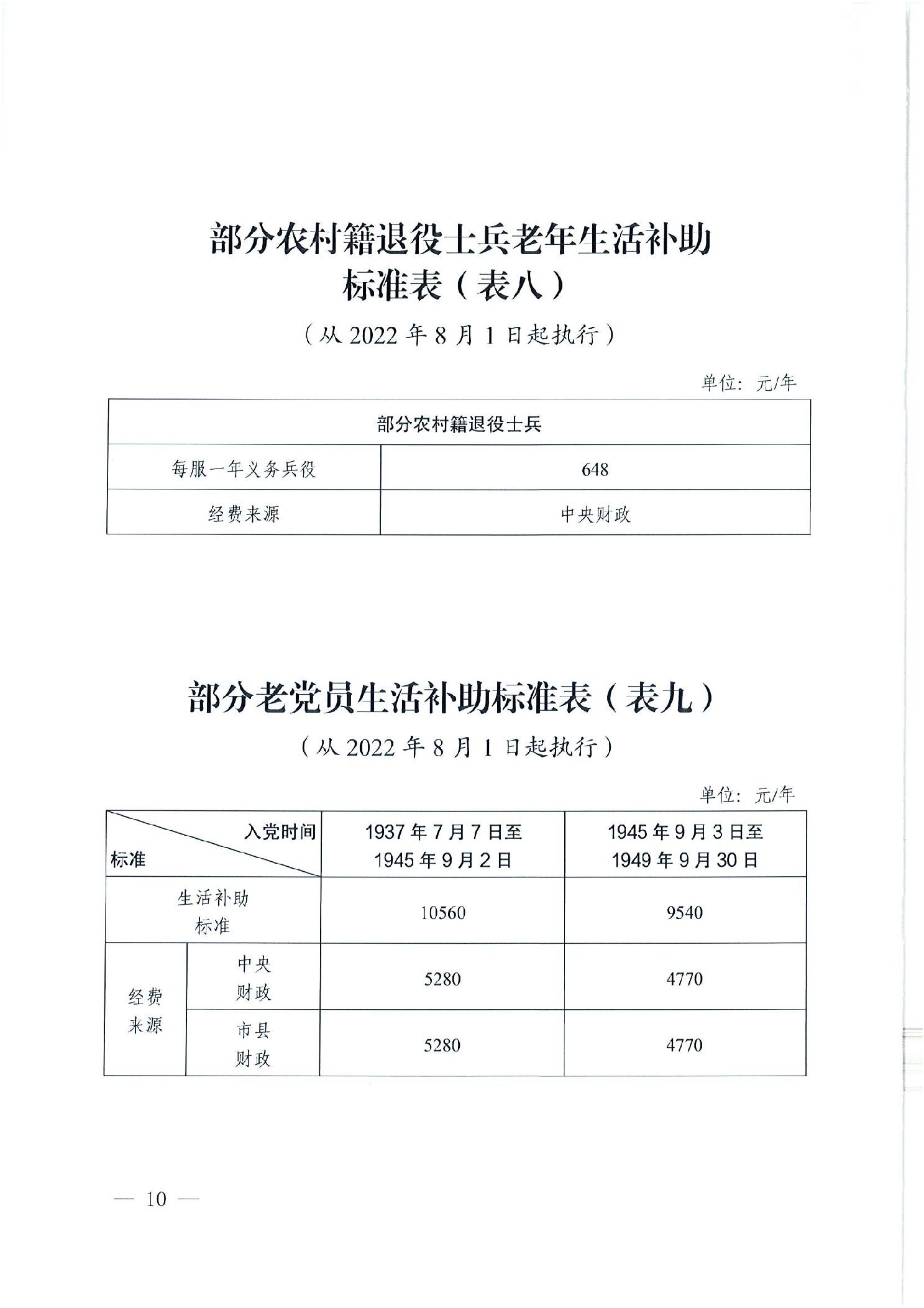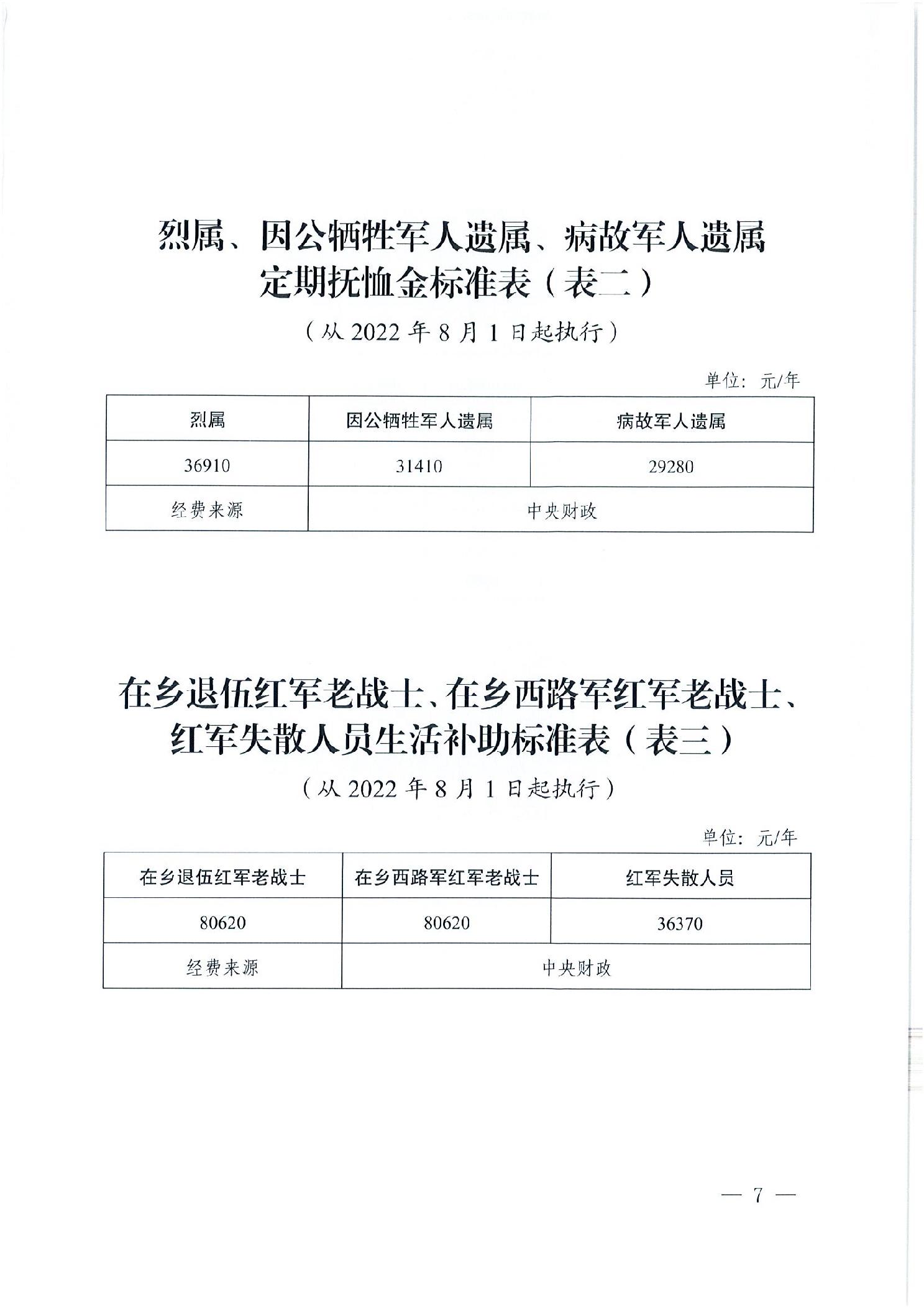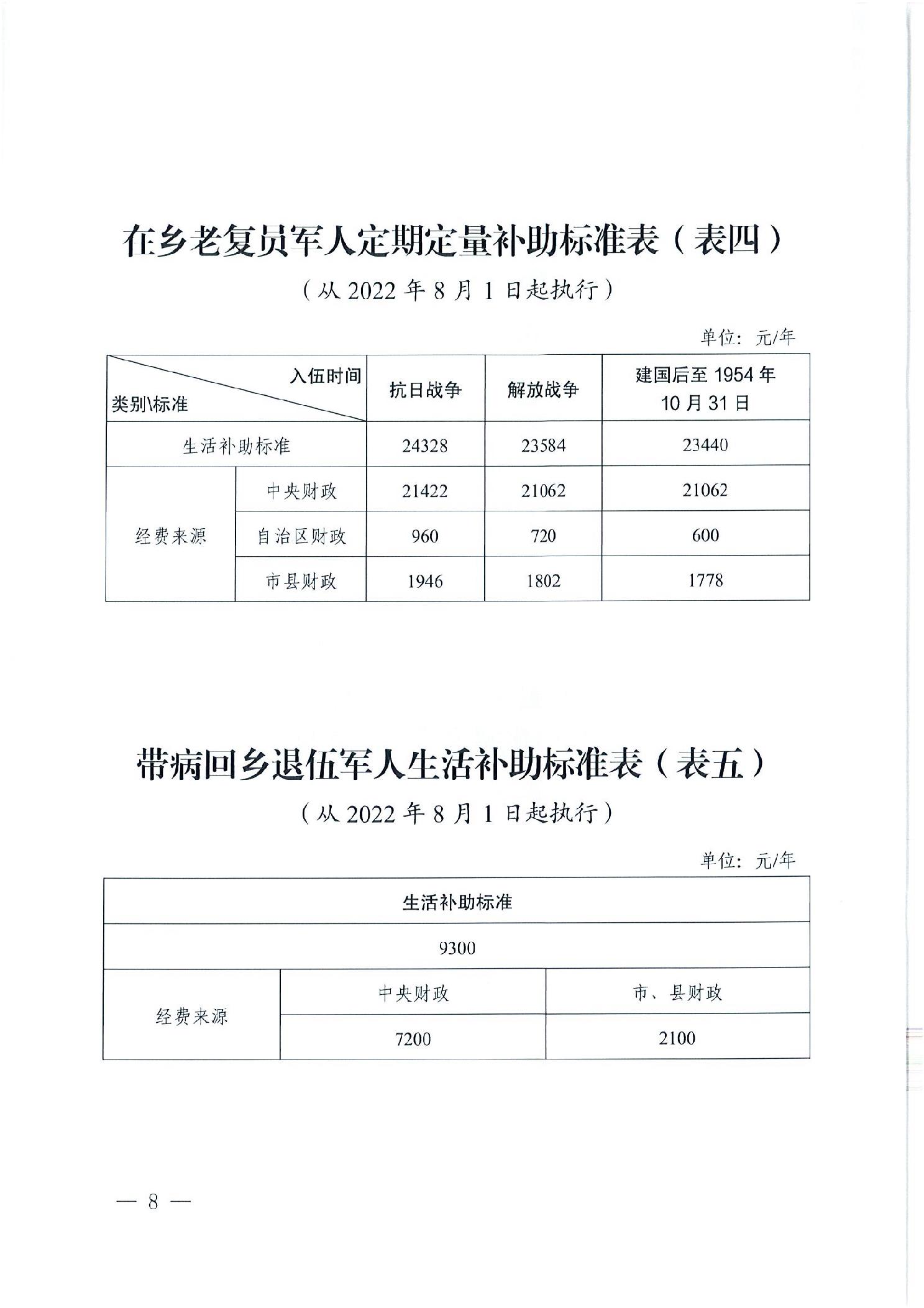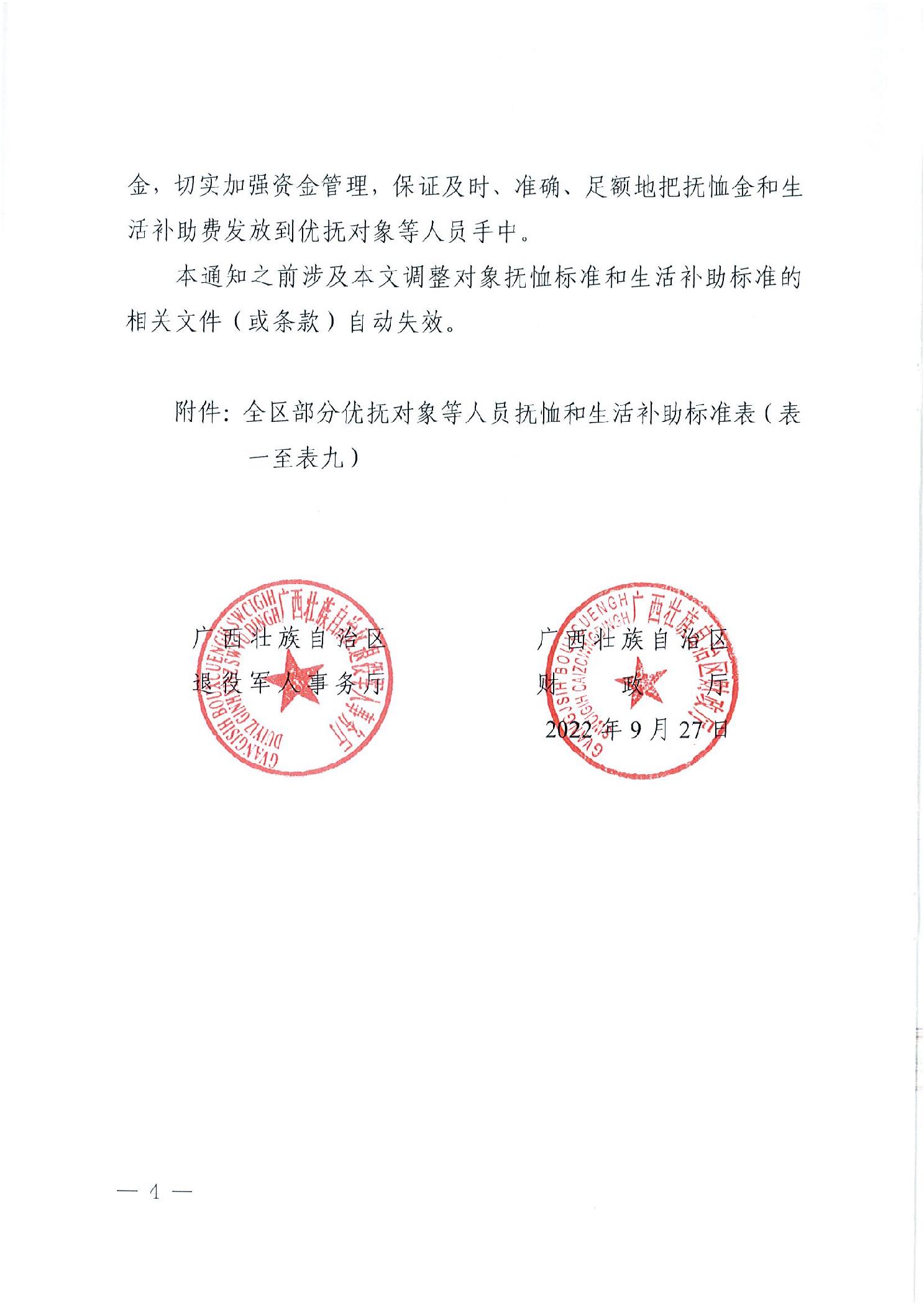 关于调整全区部分优抚对象等人员抚恤和生活补助标准的通知