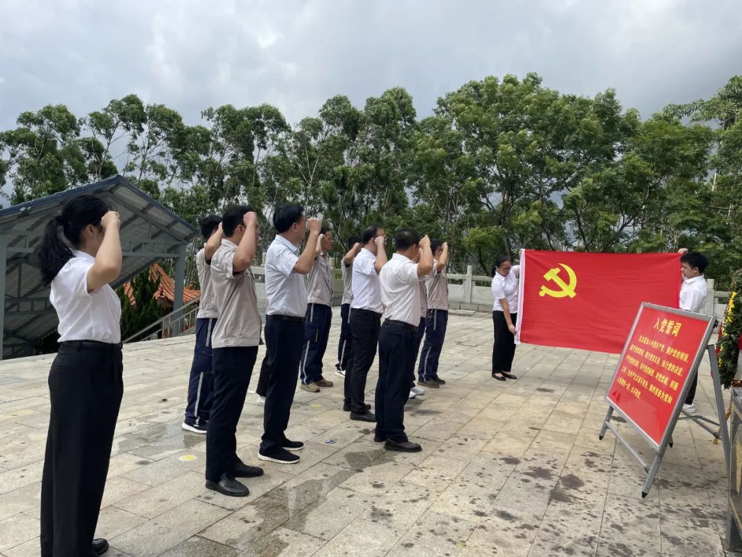 为贯彻落实习近平总书记关于加强党的作风建设的重要论述,弘扬伟大建党精神,凝聚推动高质量发展的磅礴力量,7月2日,防城港晟港达投资有限责任公司党支部、广西聚馨麦芽有限公司党支部在防城城北烈士陵园联合开展“缅怀革命先烈 激发奋进力量”主题党日活动。双方党支部党员及入党积极分子在庄严肃穆的氛围中接受精神洗礼。