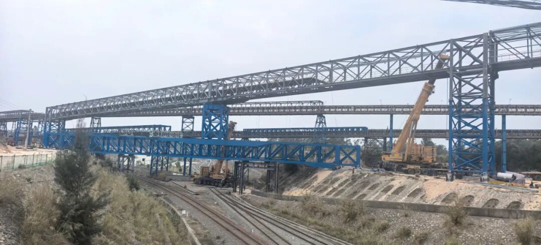 12月5日随着最后一廊架平稳精准就位,港发能源公司矿石皮带廊道项目最具挑战性的“跨铁路吊装”施工节点宣告圆满完成这标志着全长9.4公里的项目关键堵点被彻底打通。为庆祝这一重大攻坚胜利,激励全体参建人员乘势而上,当天,港发能源公司党支部与中一重工防城港片区党支部联合开展了以“打通项目‘最后一公里’,决胜建设‘收官之战’”为主题的党日活动。